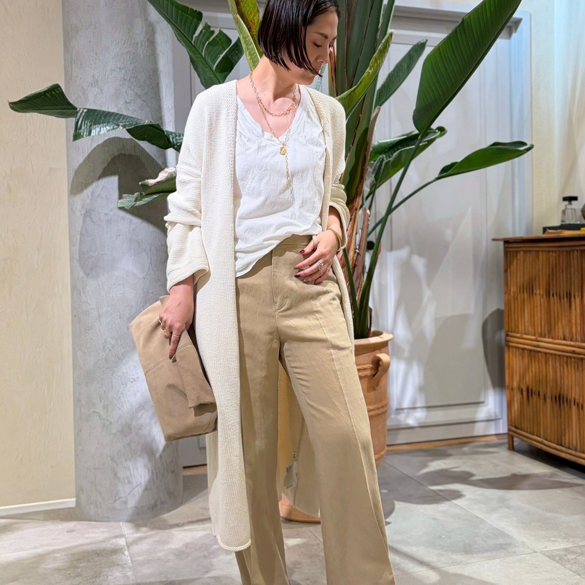 ドライな質感や軽い生地が多くなる季節。ニットパンツの適度な重みや落ち感がスタイリングに味とメリハリを加えてくれます。