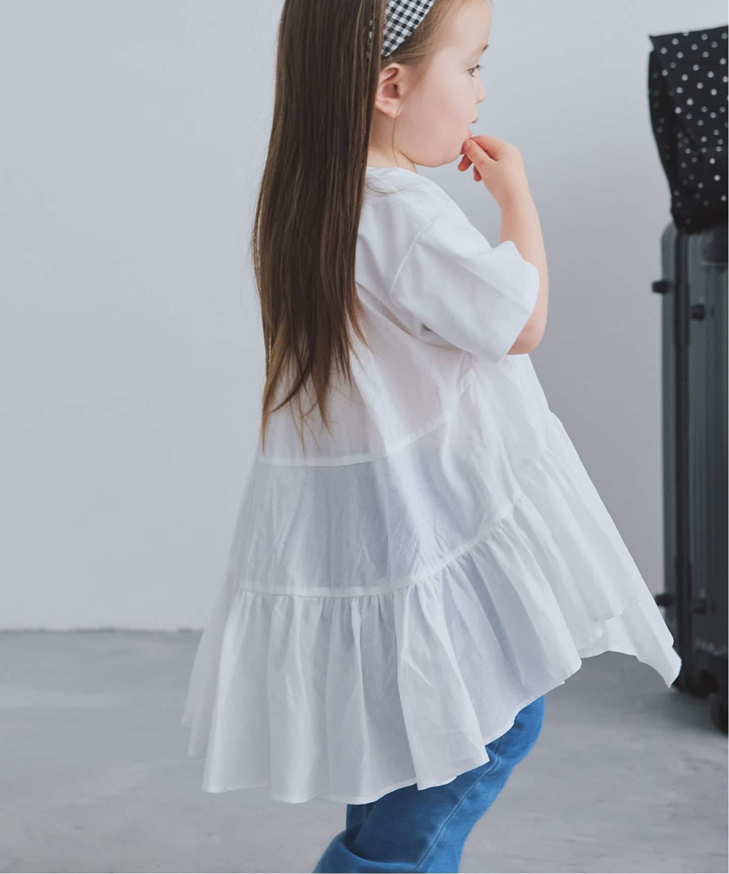ハーフパンツもティアードを合わせることで、可愛らしくまとまった印象に仕上がります。