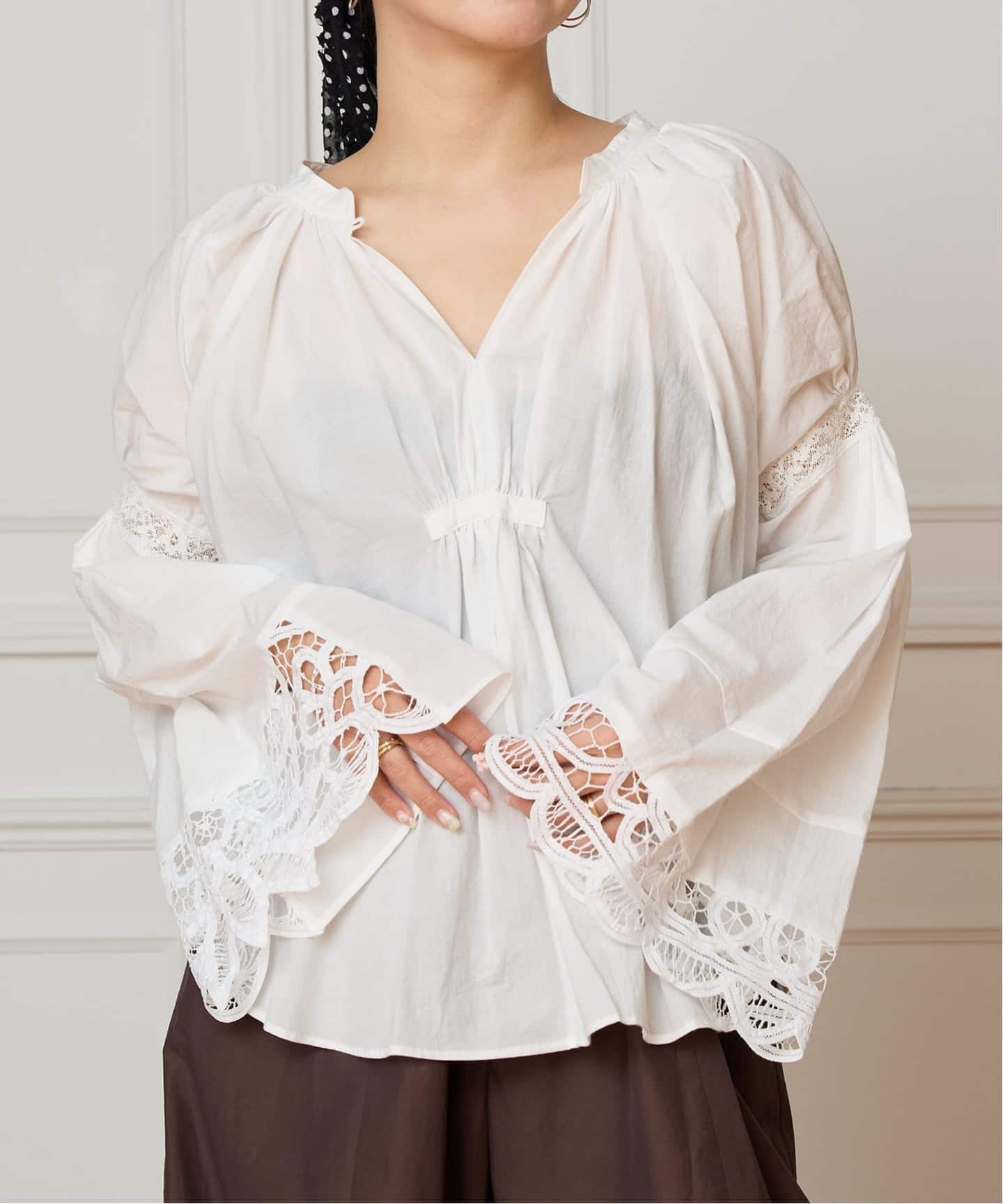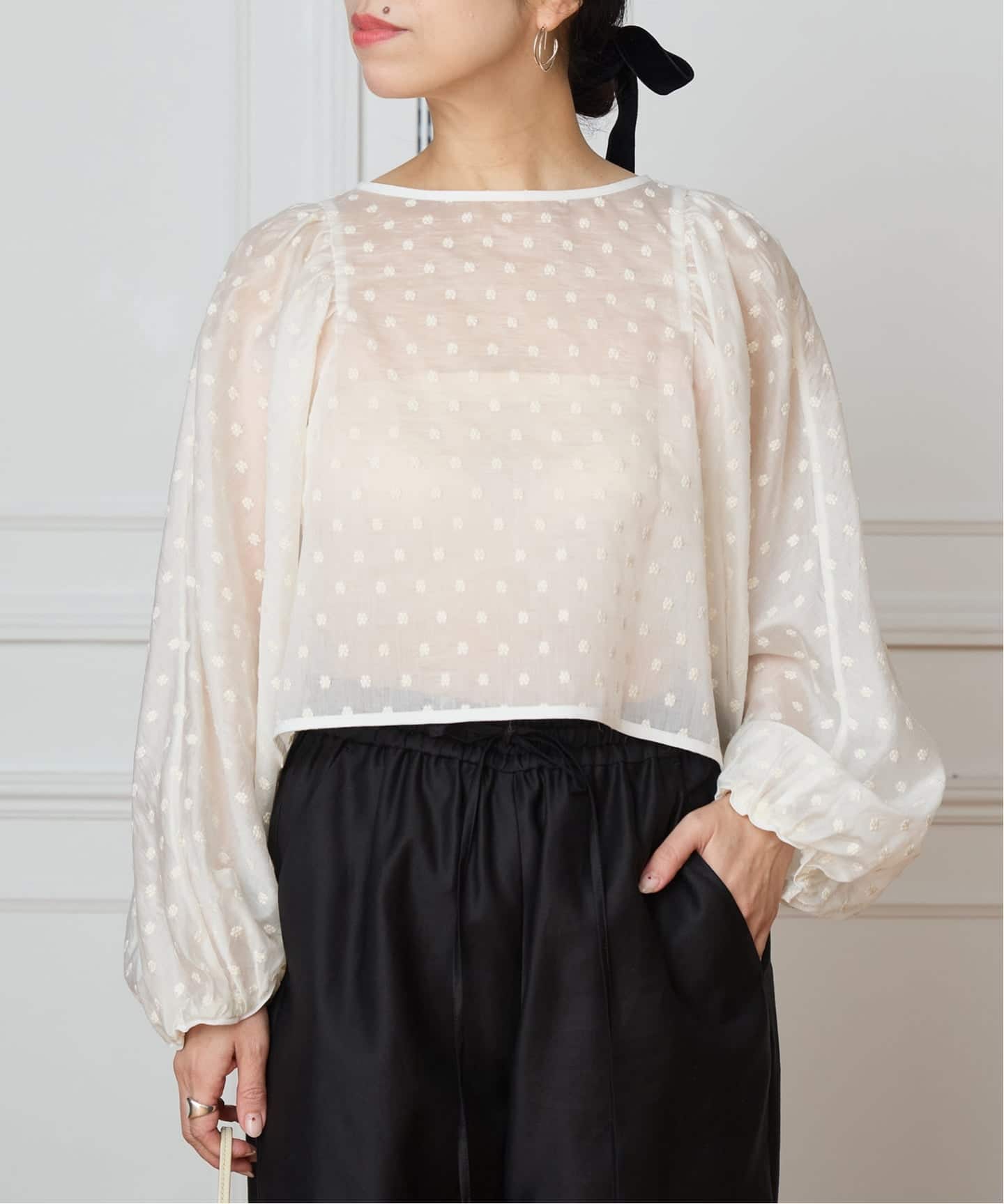 1枚で華やかな印象を叶えるブラウス。