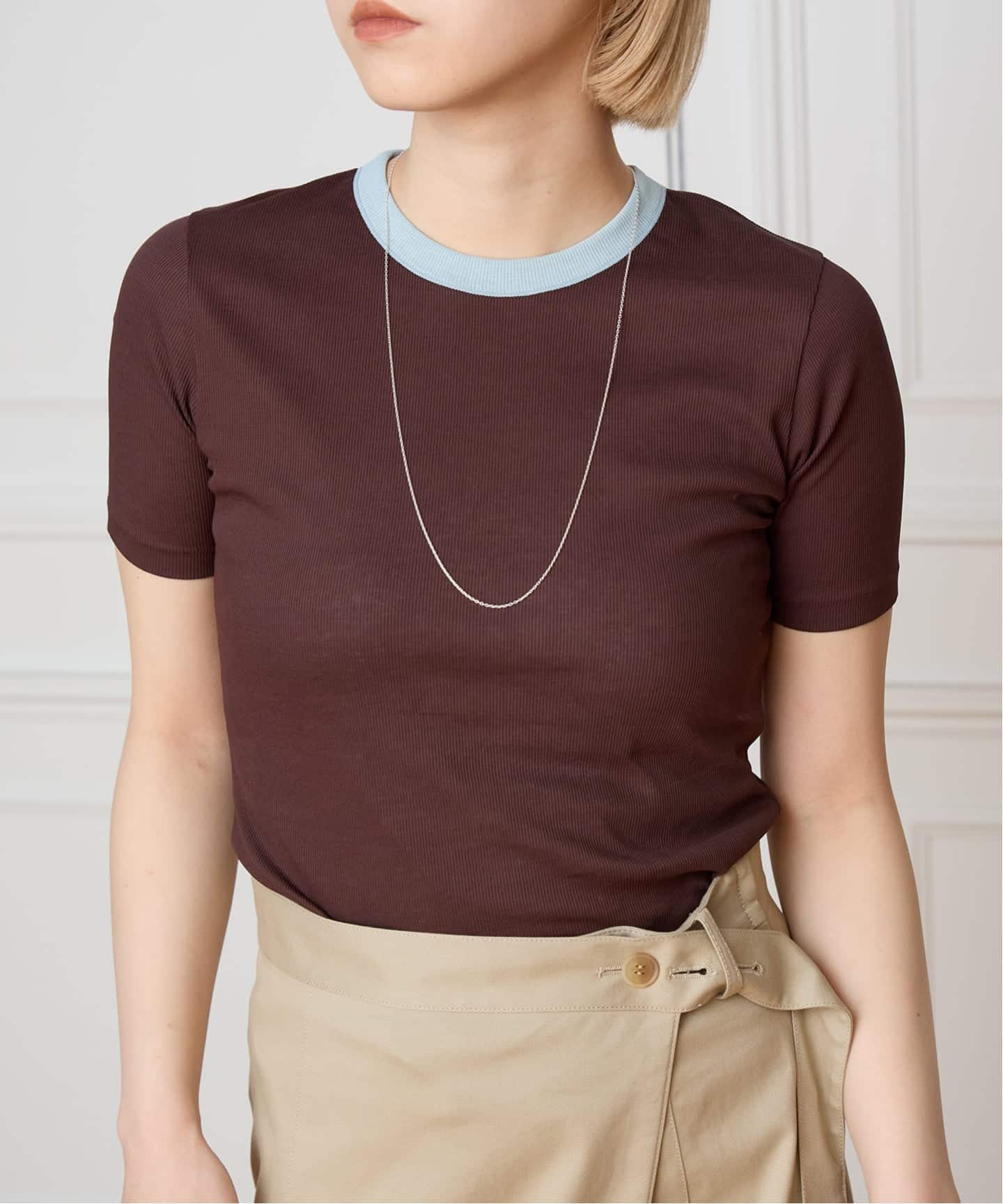 Tシャツよりも大人見えを狙うなら、ニット素材が適役。