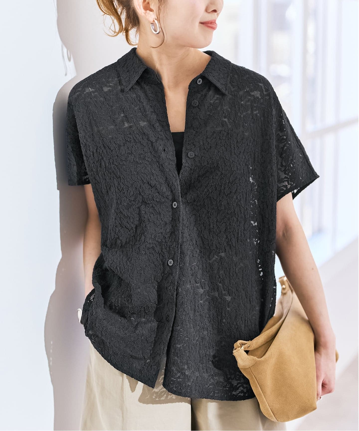軽やかで透け感のあるレースが印象的なオープンカラーシャツ。