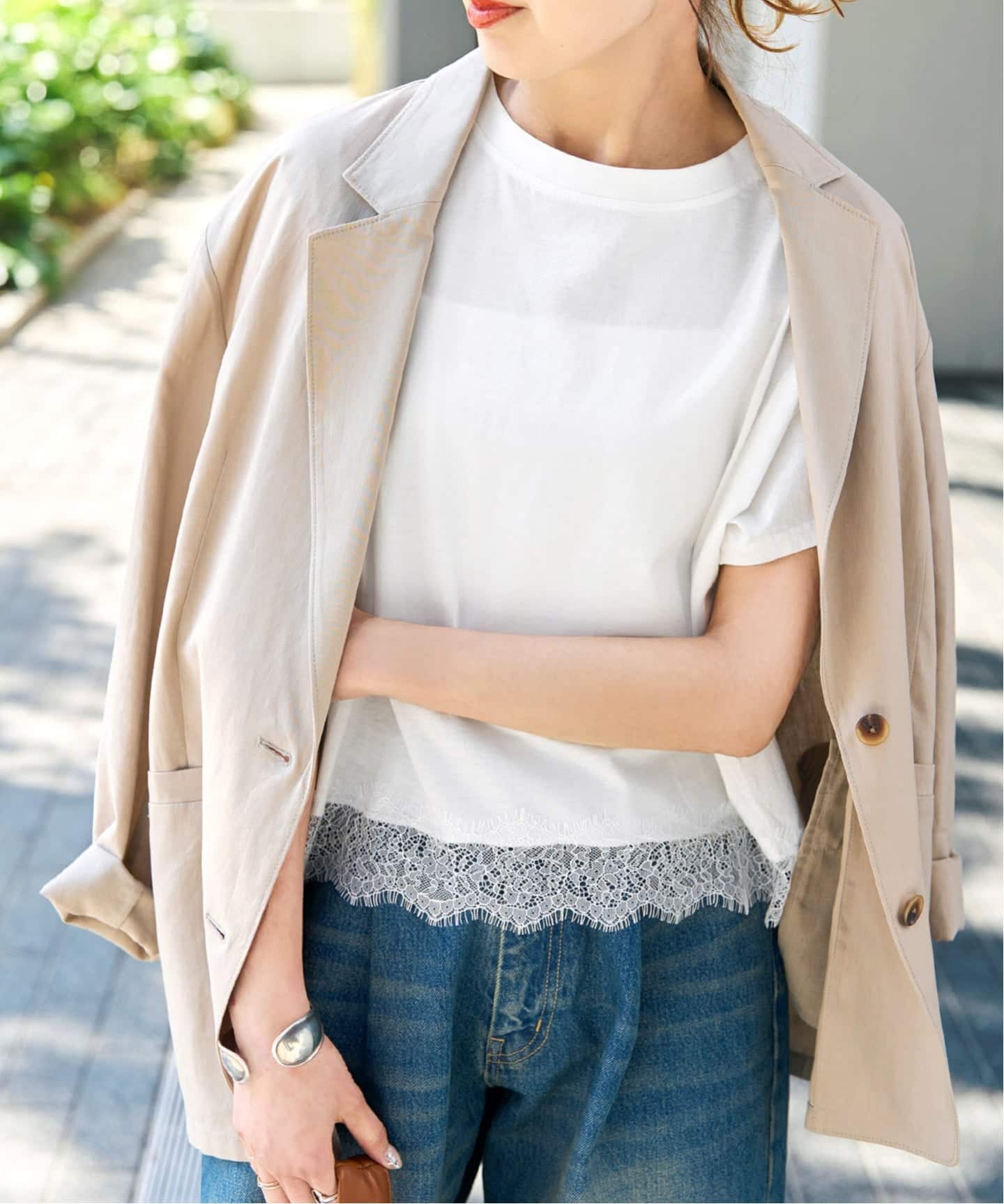 カジュアルなTシャツにレースをプラスしたデザイン。