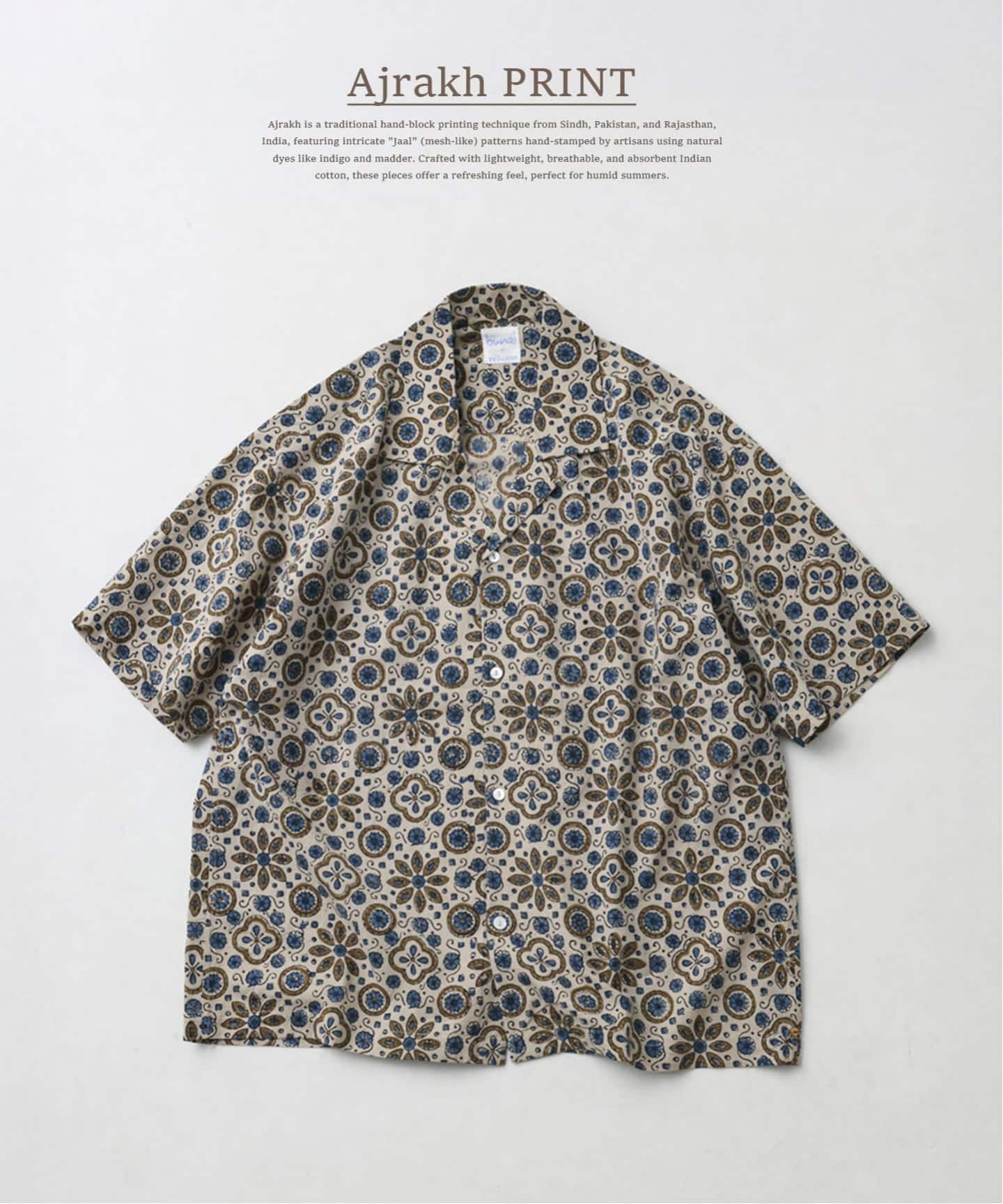 《予約》bunai / ブナイ 別注 アジュラク プリント オープンカラー半袖シャツ