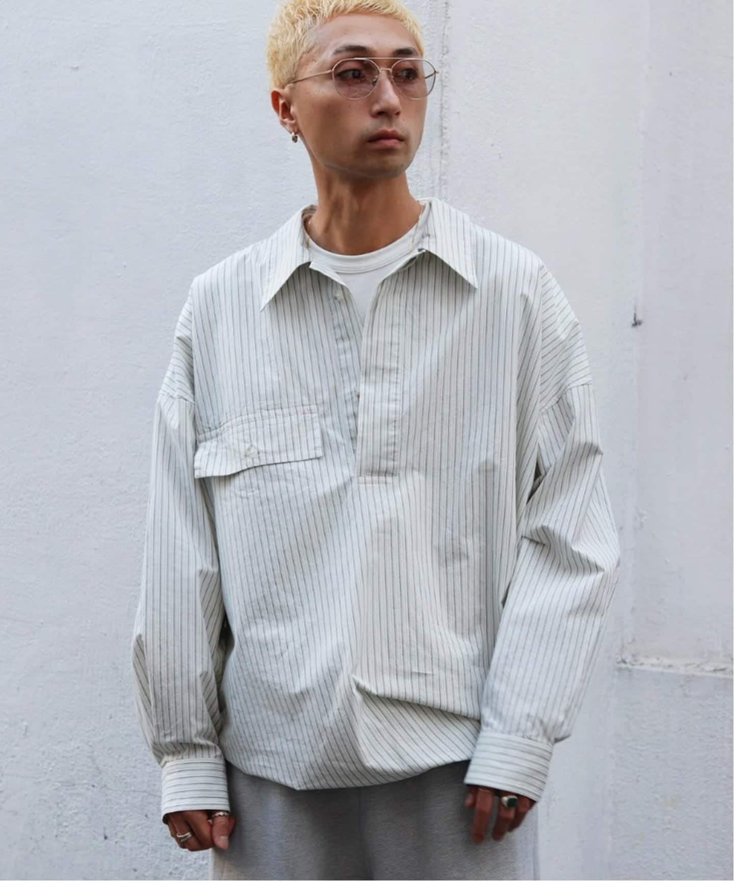 台襟を排したミニマルな設計により、ボタンの開閉で印象に変化をつけられる仕様。裾は直線的なボックスカットにすることで、シャツとしてはもちろん、軽い羽織としても成立し、スタイリングの幅を自然と広げてくれます。