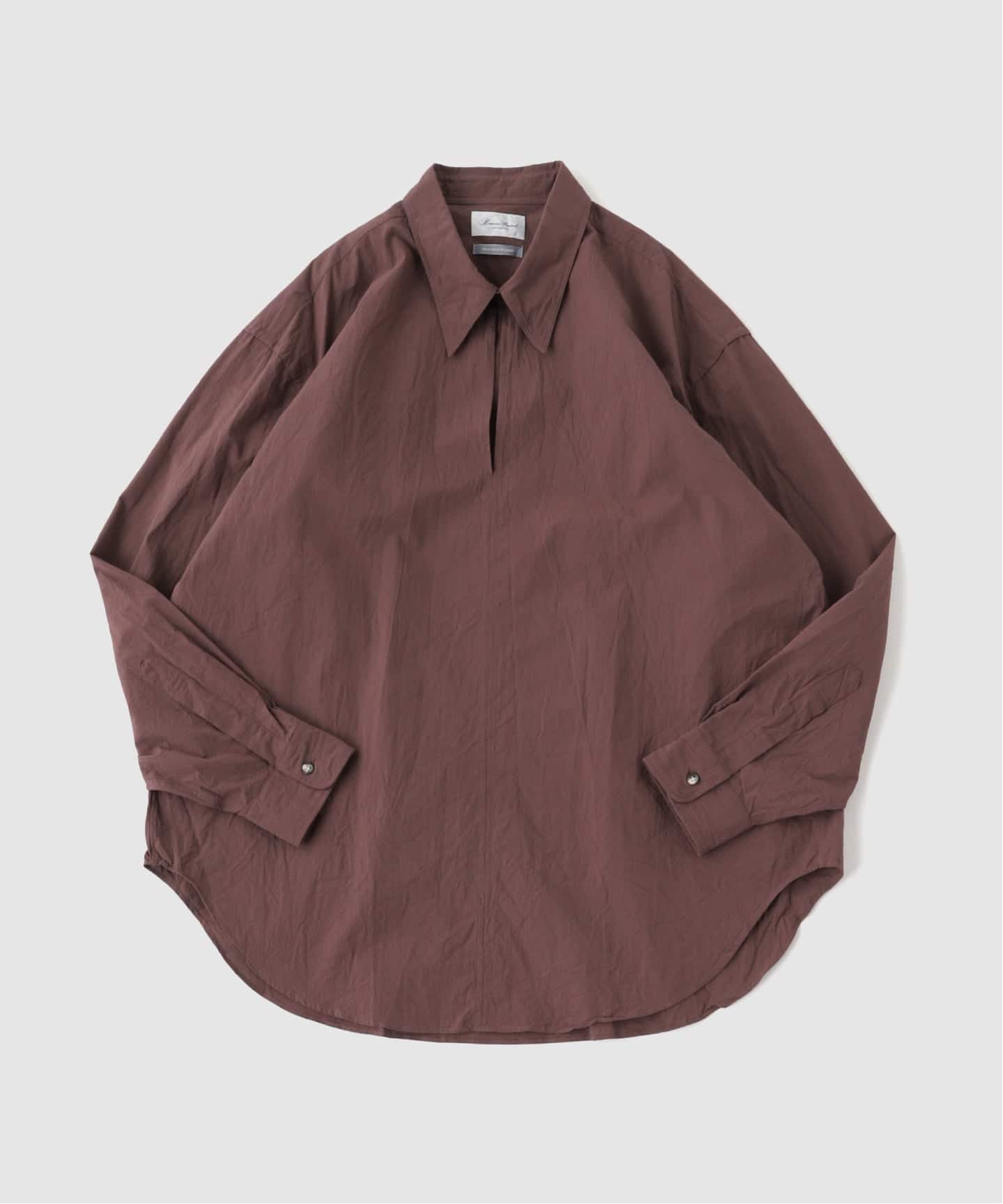 巷にあふれるいわゆるオーバーサイズのカジュアルシャツとは一線を画す、緻密な運針とパターンの完成度。数型の定番を軸に、その時々の生地を落とし込んでいくプロダクトは、「いつのシーズンか」を感じさせない稀有な存在でもあります。