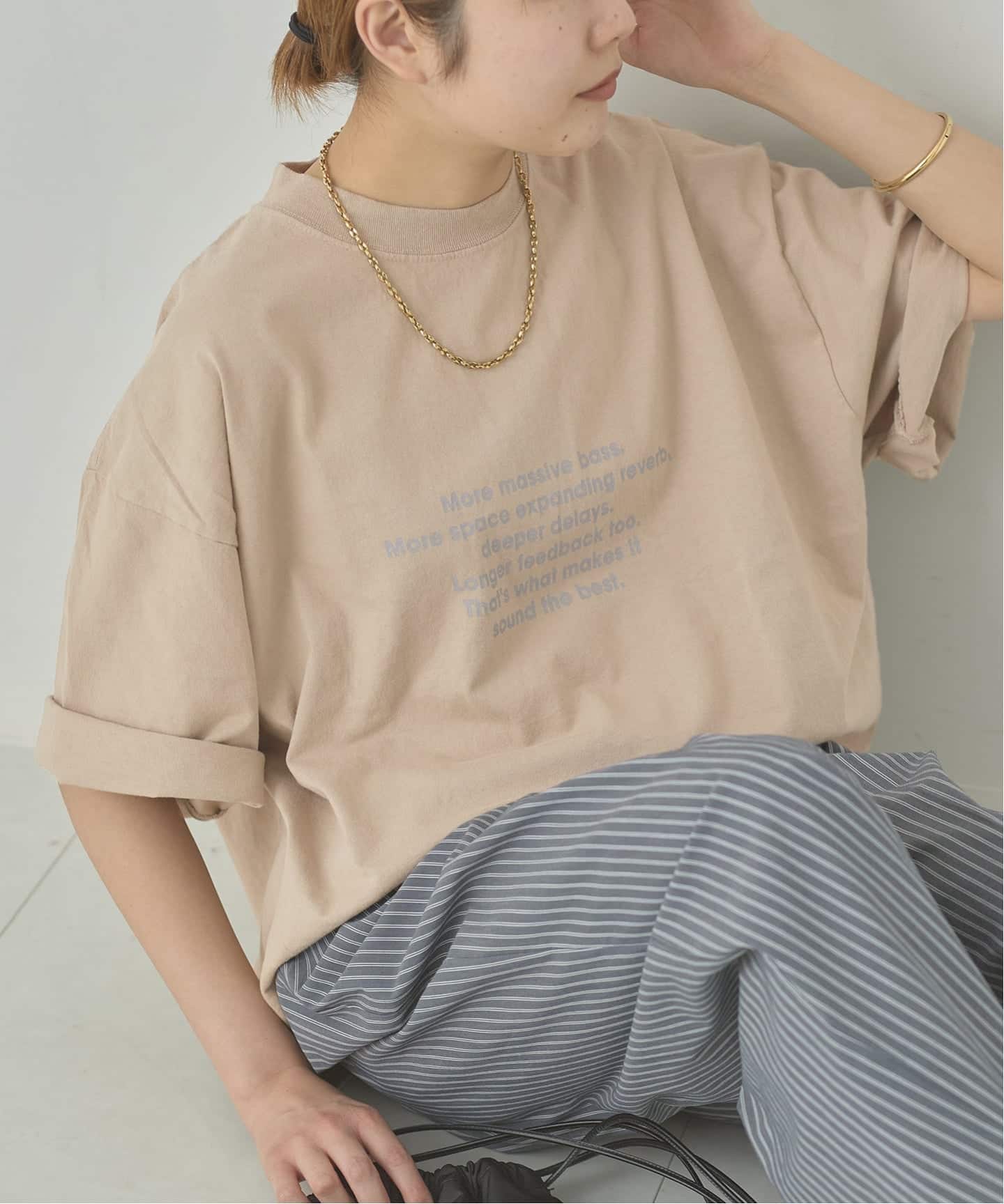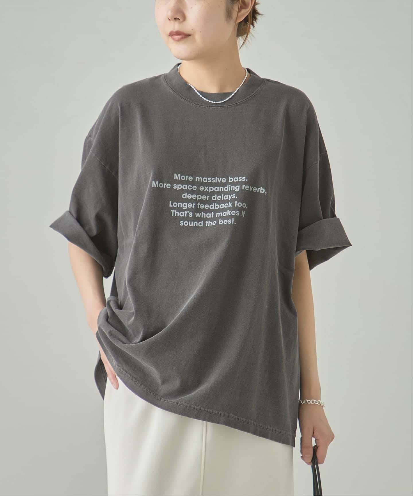 染めの風合いをヴィンテージ風にすることで、大人っぽく仕上げたロゴTシャツ。