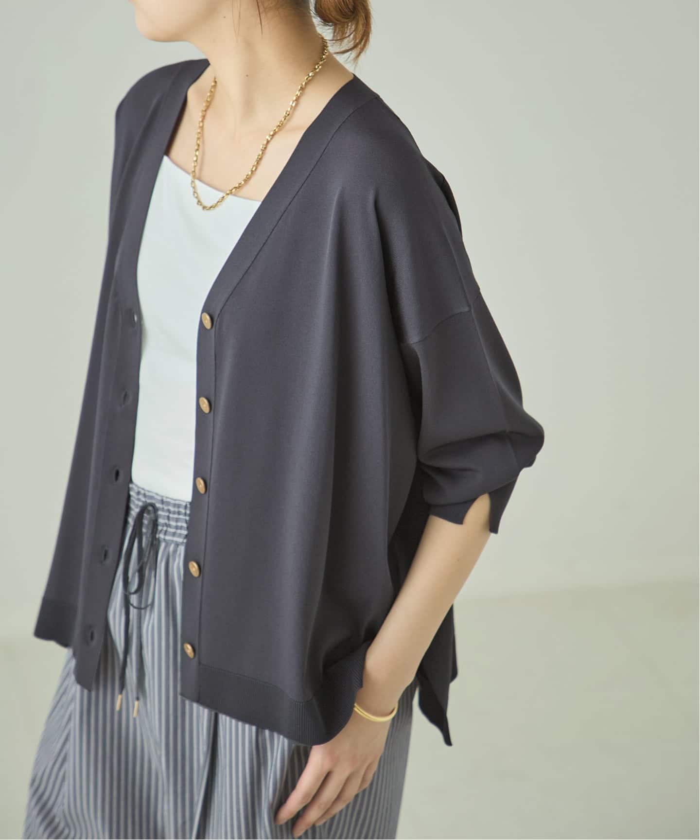 オンオフで使い回ししやすい大人のカーディガンです。