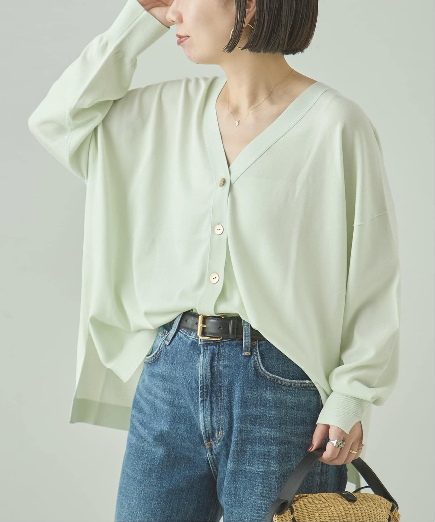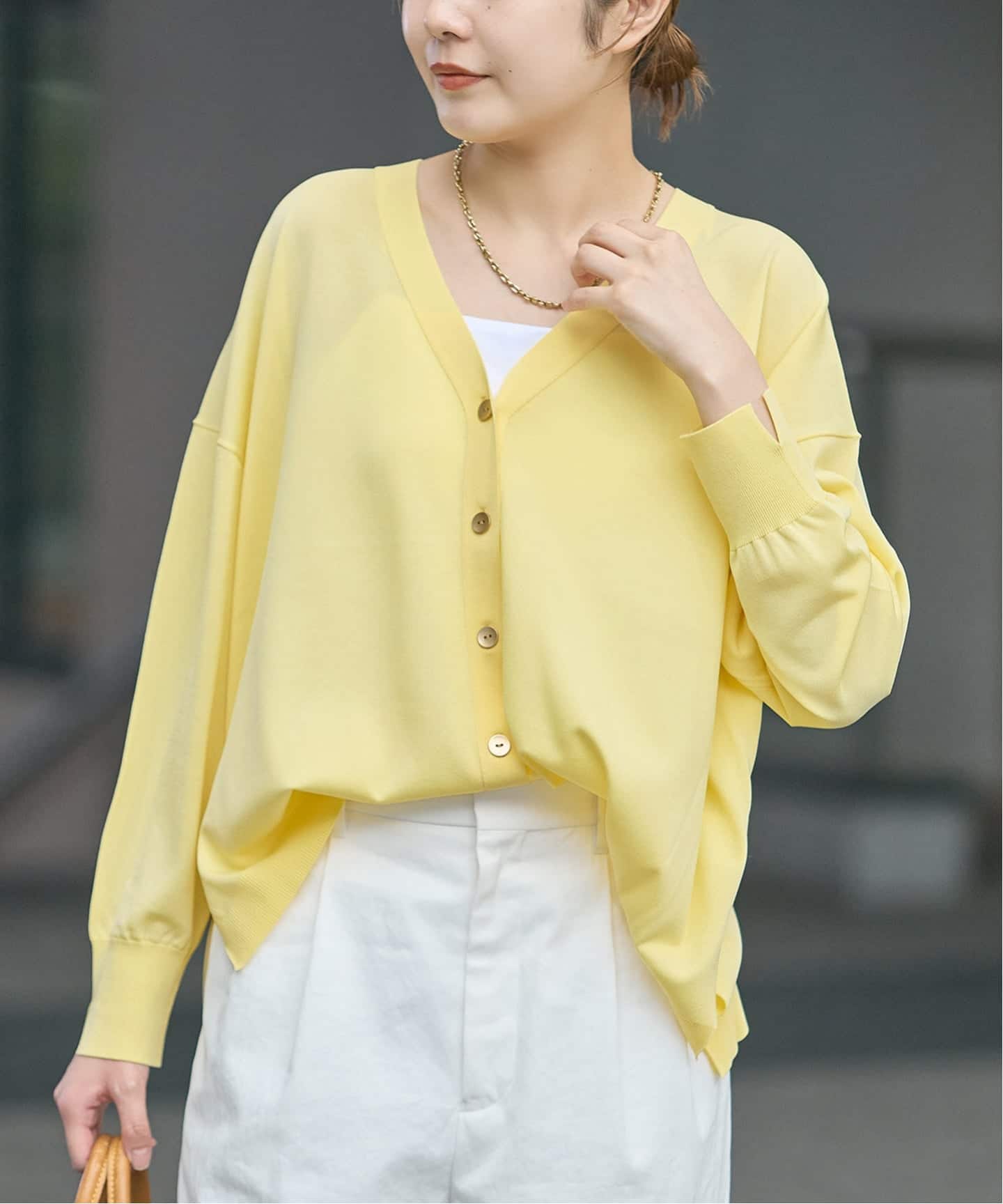 ゆったりしたサイズ感が大人っぽい抜け感を演出するカーディガン。