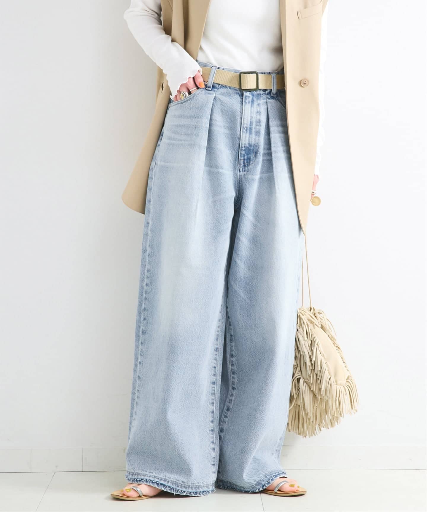 人気のセルロースを使用した柔らかさのあるタックジーンズ。