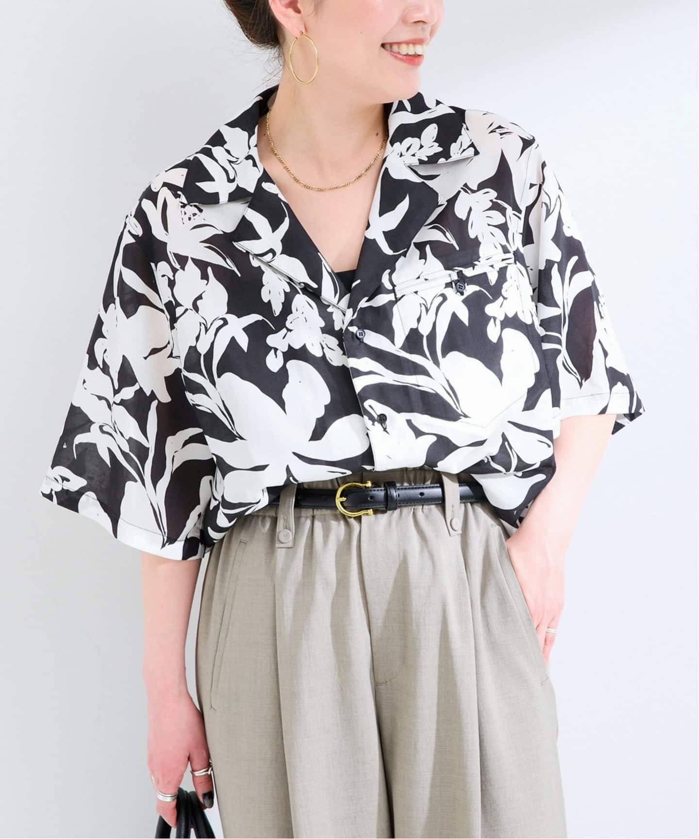 さらりとした生地感で肌触りが良く、落ち感がキレイで抜け感のある着こなしになっています。