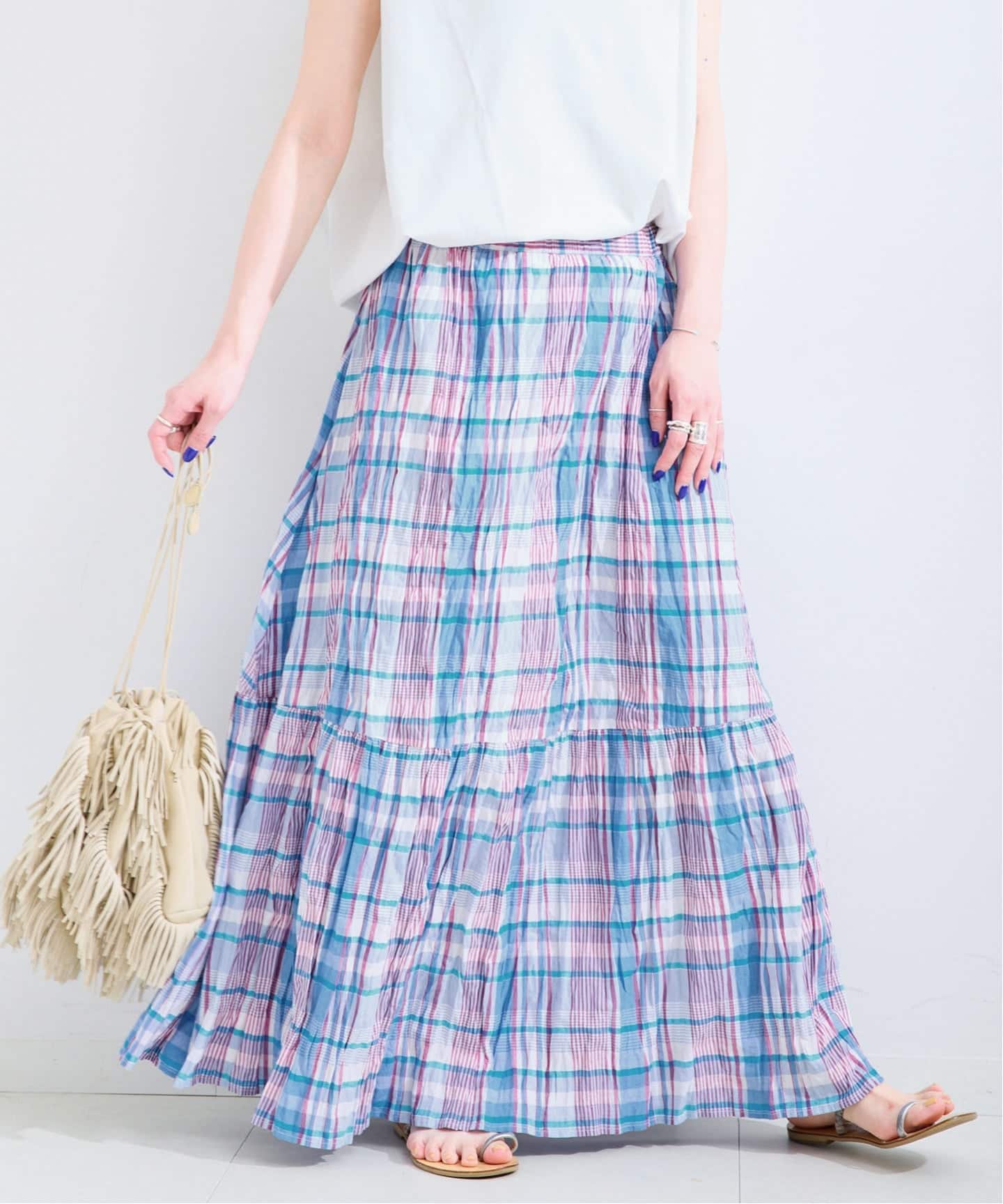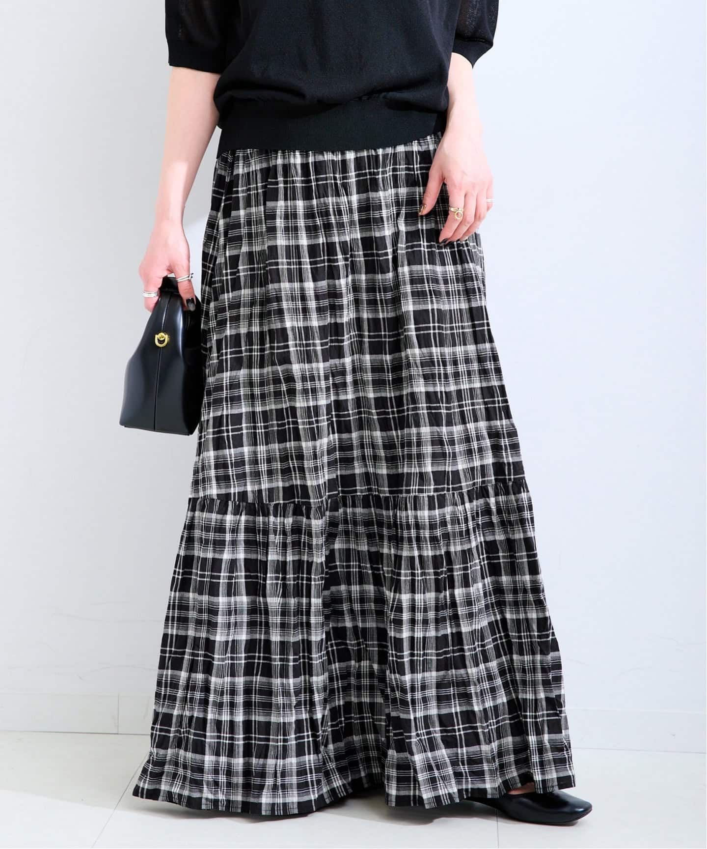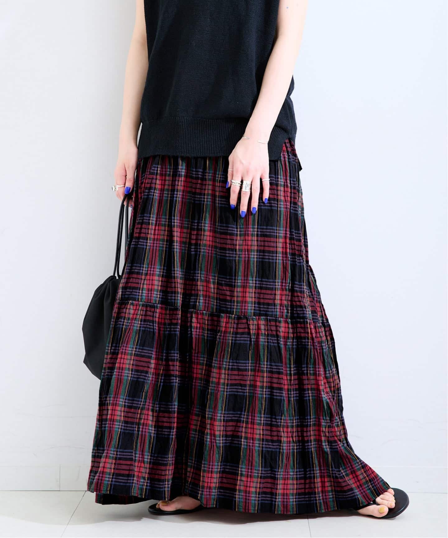 【WEB限定】先染めチェッククリンクルスカート