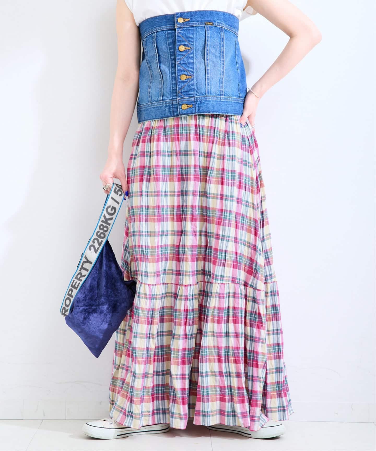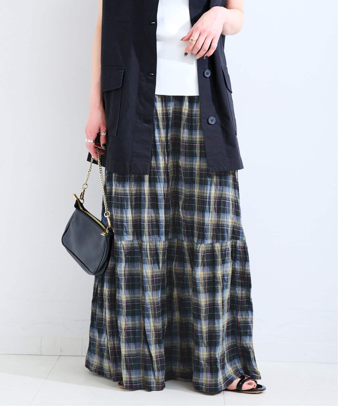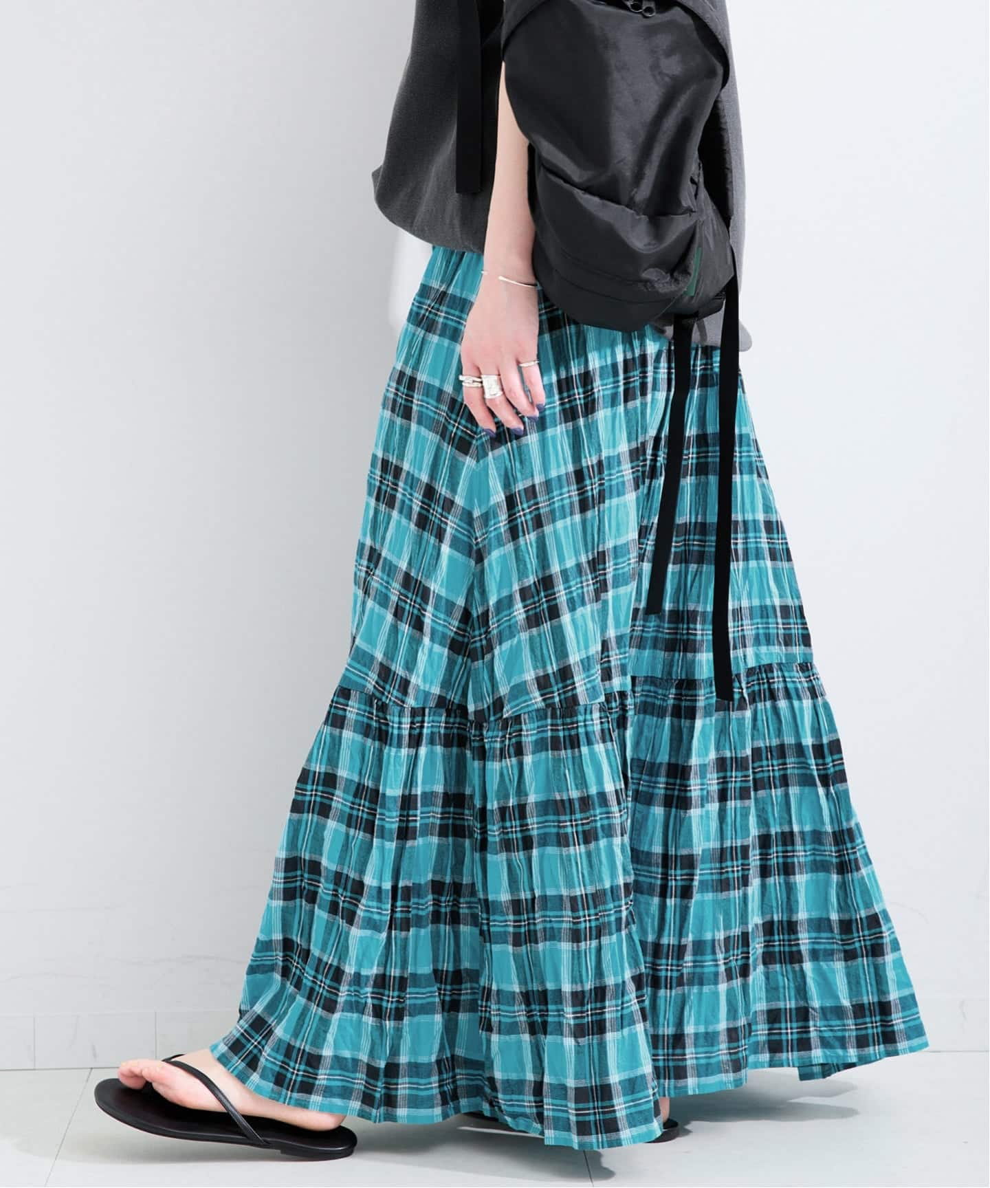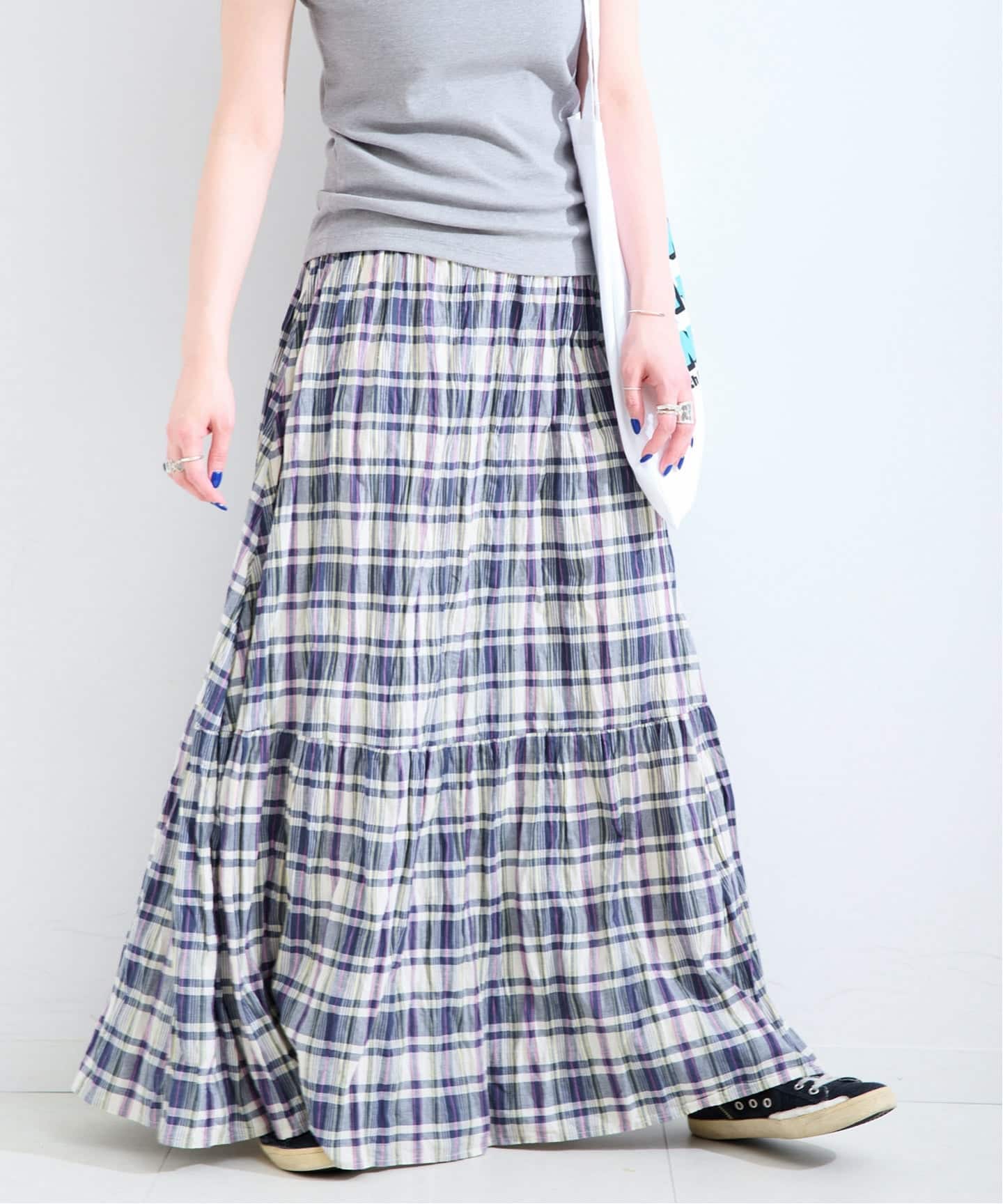 【WEB限定】先染めチェッククリンクルスカート