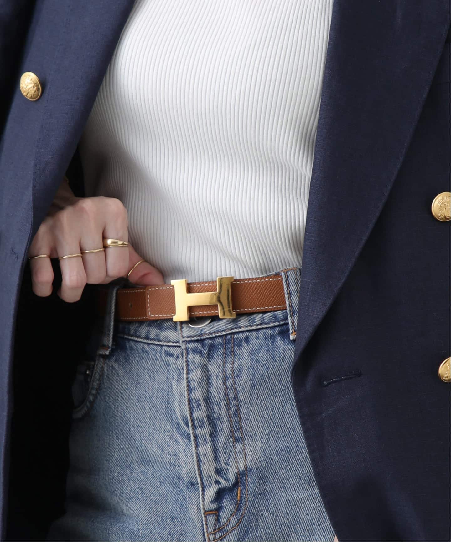 アイコニックなバックルとゴールドレザー。華やかな存在感がありながら、決してやりすぎないのがこのベルトの魅力。大人のための、エルメスゴールド。スタイルに何か物足りない時に全体のバランスを整えてくれる心強い味方は、クローゼットに持っておきたい。