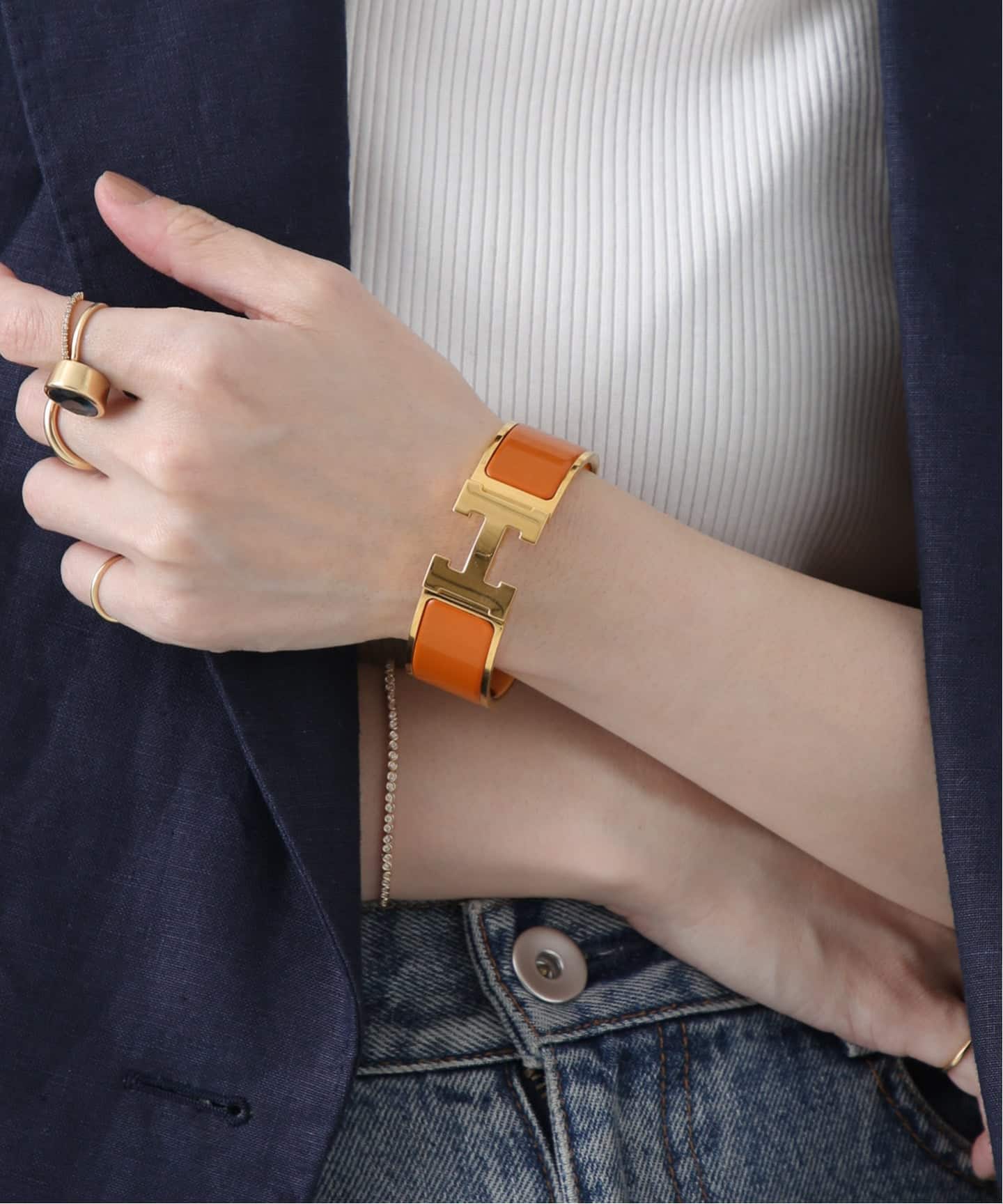 ミニマルでいてどこか印象に残る。インザループの魅力は、ちょっと気の利いたデザイン性。エルメスのモチーフは存在しながらエッジーすぎず、甘くない。主張しないのに、なんとなく目に留まる。その絶妙さが、今の気分。