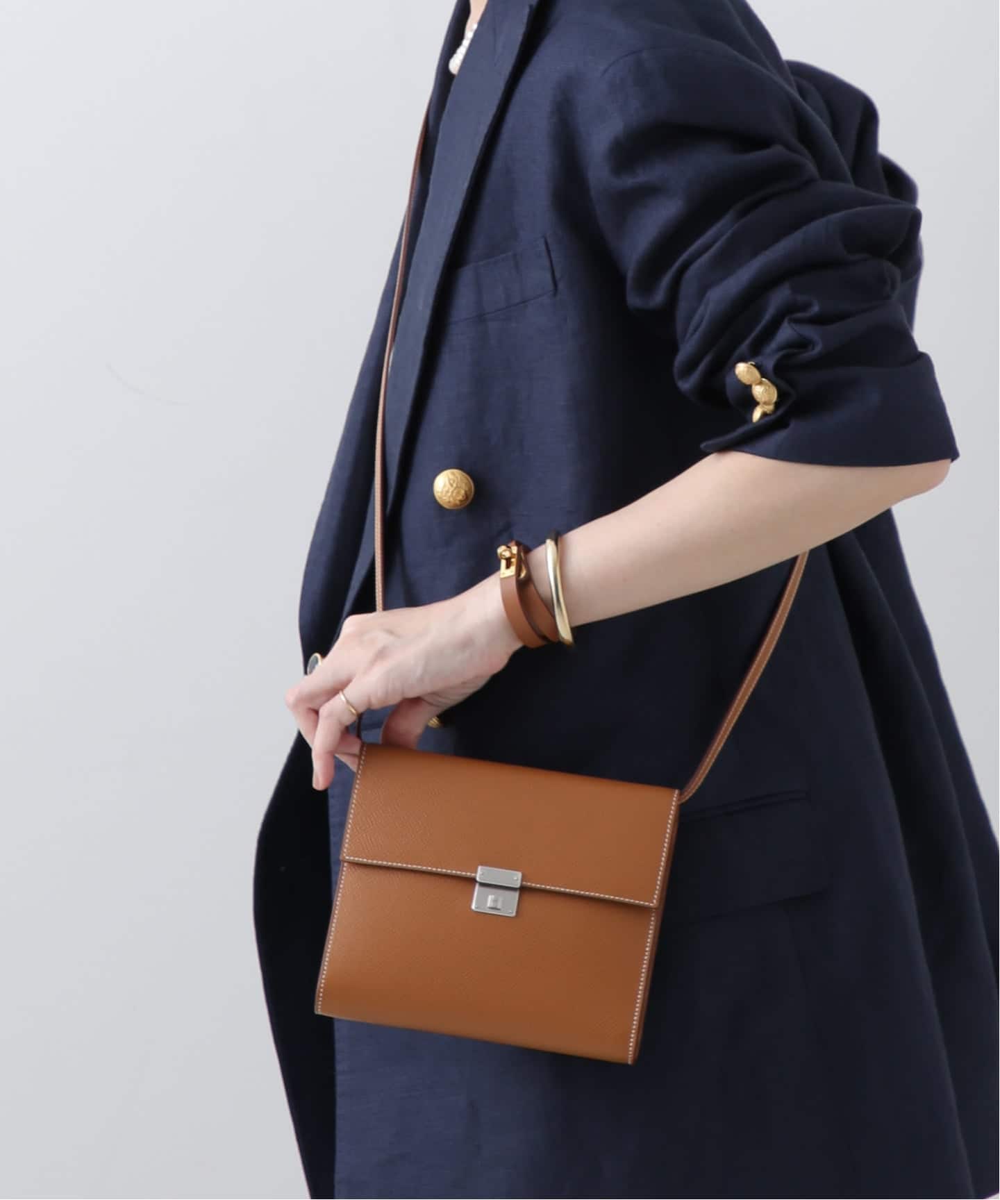 トゴの柔らかさとシルバー金具のクリーンなムードはどんなスタイルにも自然に馴染みながら、全体を引き締めてくれる。迷ったときに選びたくなる、計算されたベーシック。きれいめなスタイルに合わせてもかしこまりすぎず、カジュアルに合わせても品を保ってくれる頼もしさ。