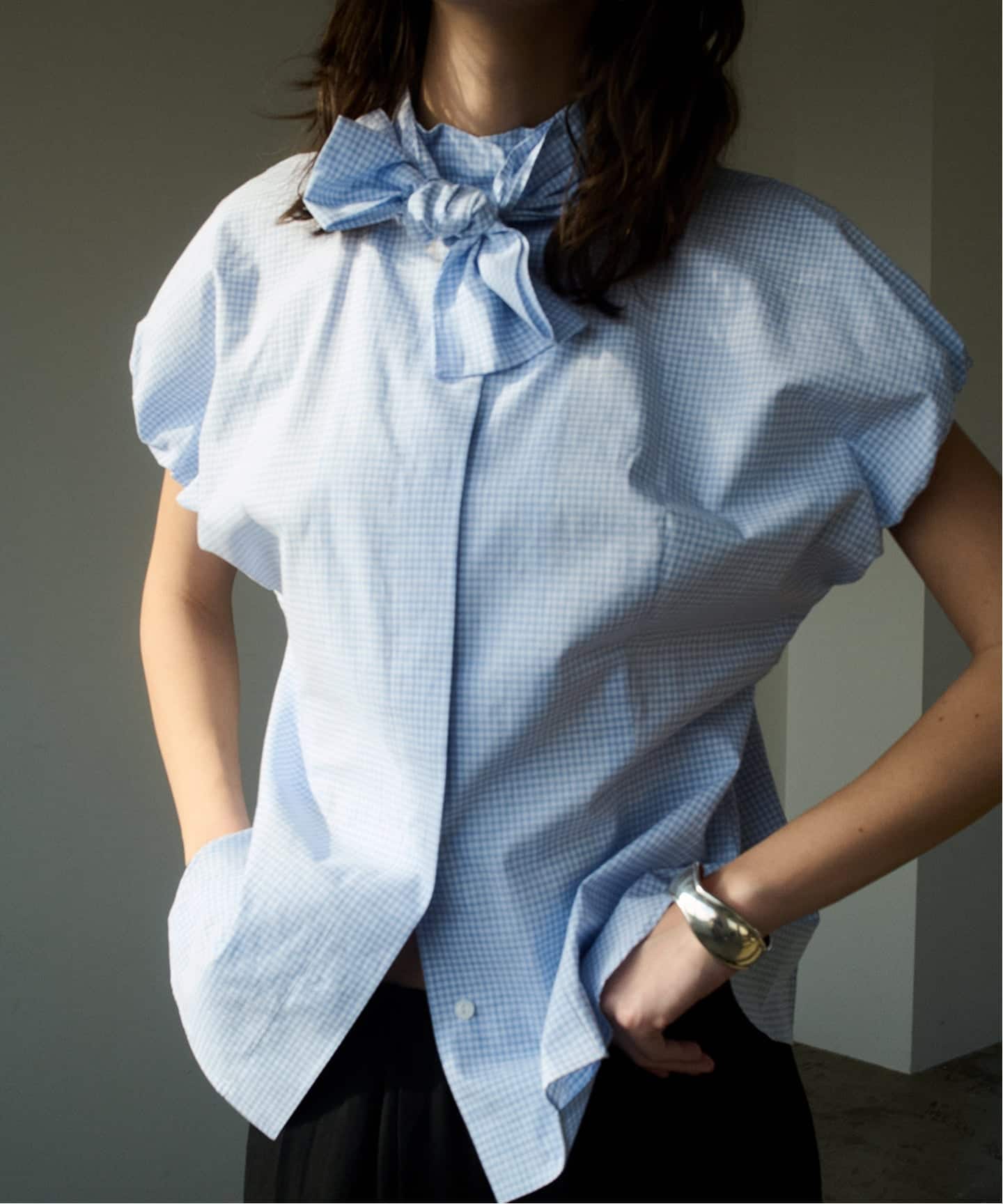 ギンガムチェックにリボンディテールを効かせた、今のムードにちょうどいいブラウス。