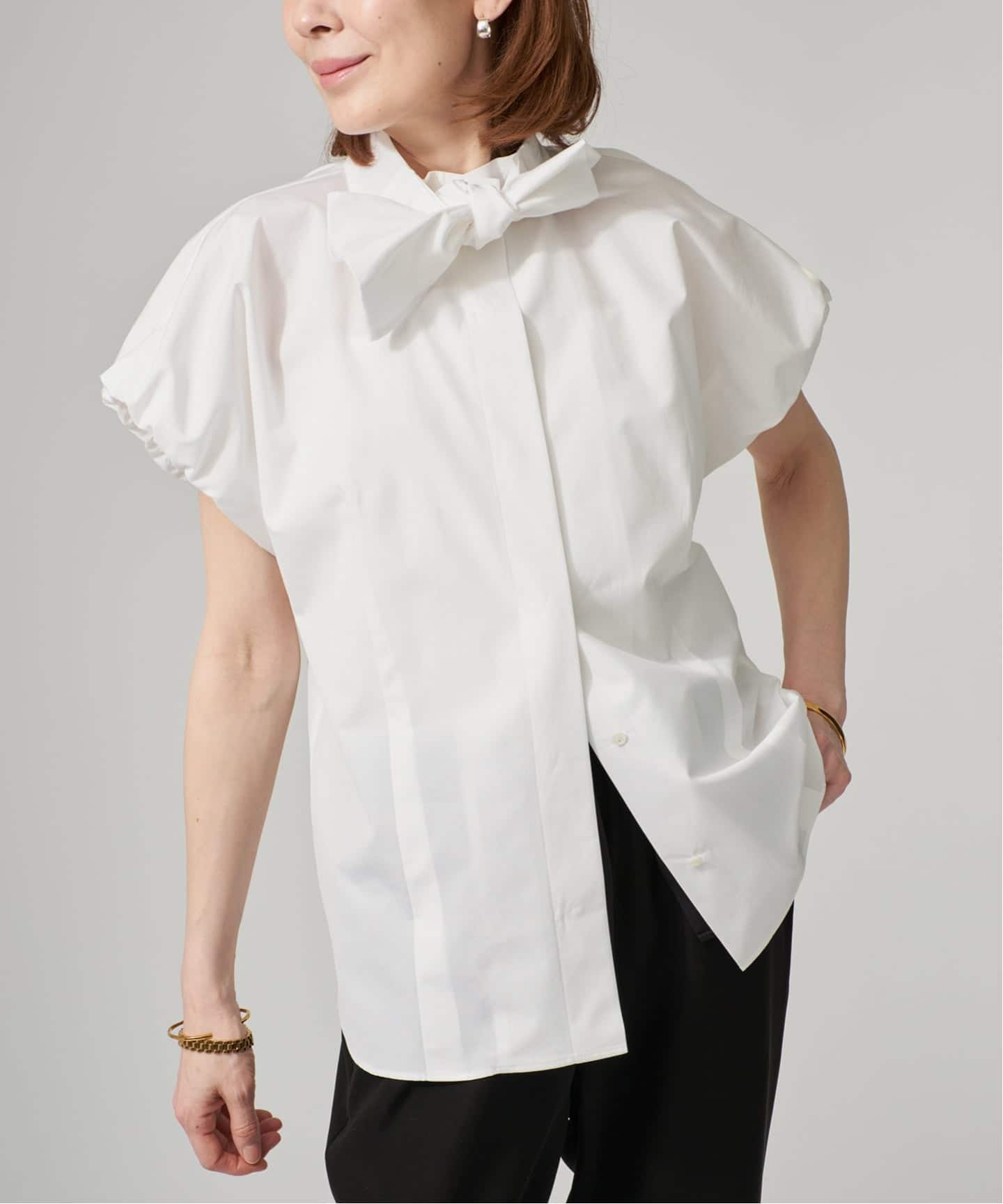 リボンはきちんと結ばず、ラフに垂らして着るのがおすすめ。