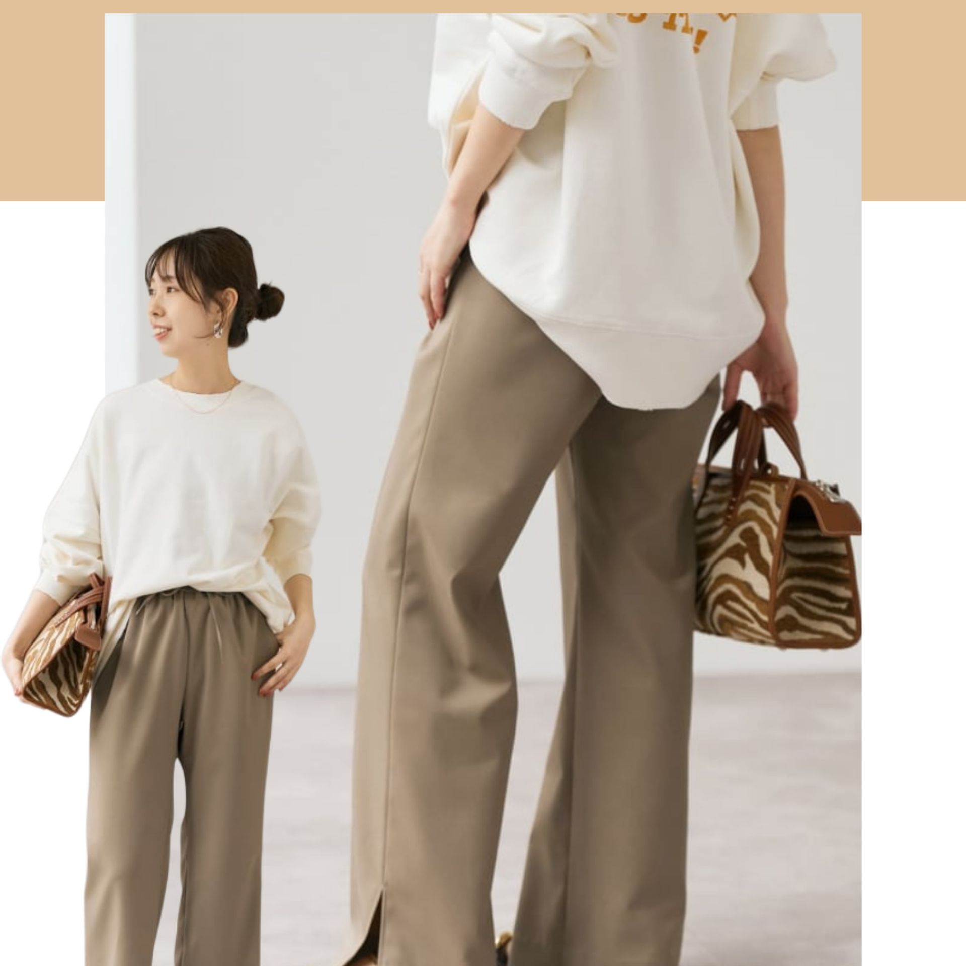 サイドのスリットのおかげで足元で生地がたるまず脚長効果バツグンです。