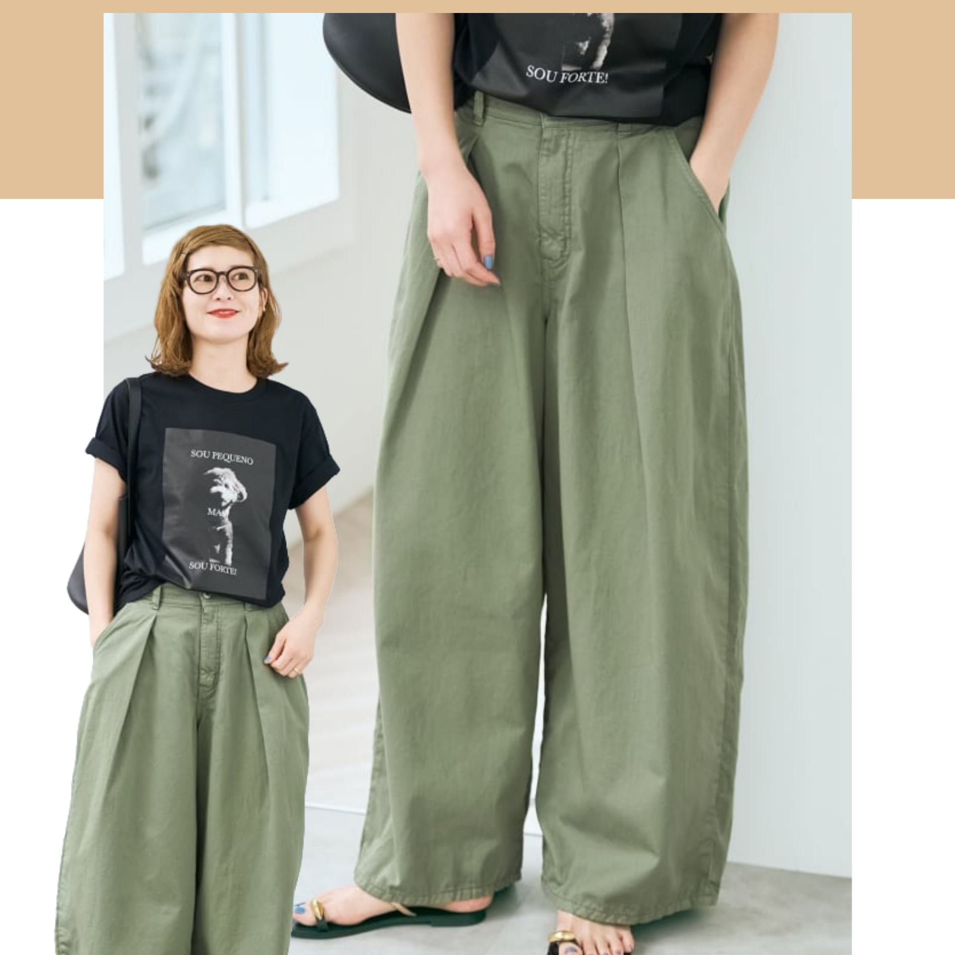 私はスニーカーやヒールの低いサンダルと合わせる予定で購入しましたが、高めのヒールと合わせる場合は、さらにサイズを上げてもいいのかなと思います。
