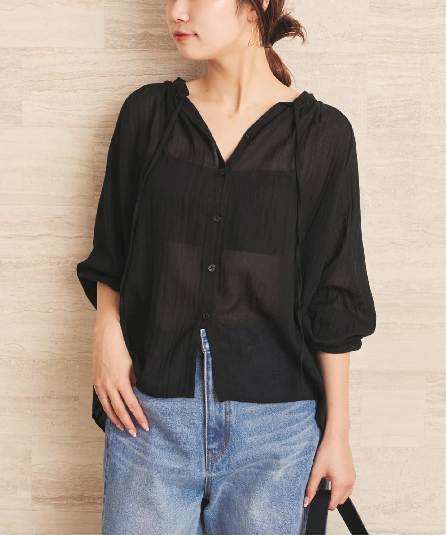 《予約》le / ル JACQUARD DRAWSTRING ブラウス