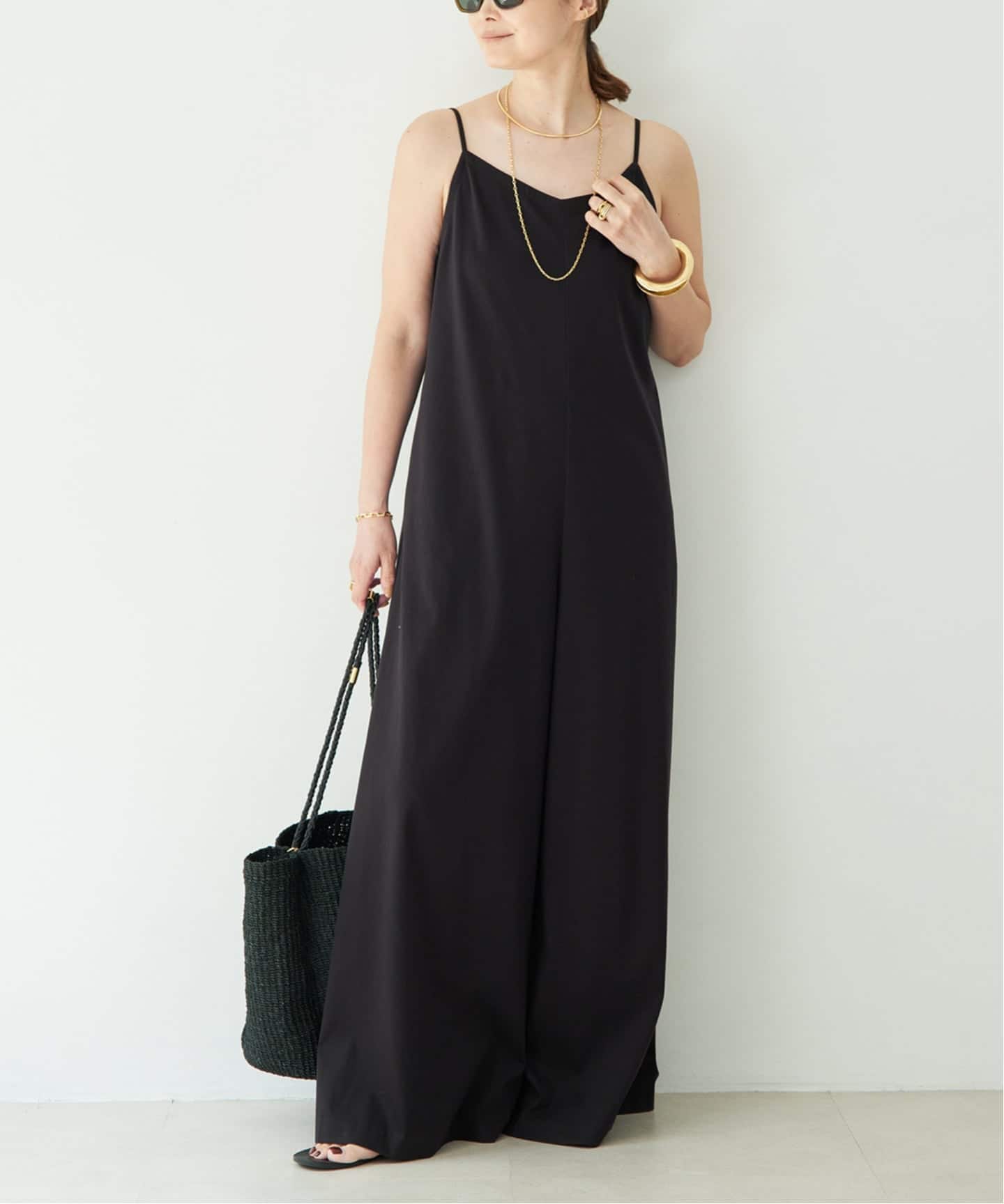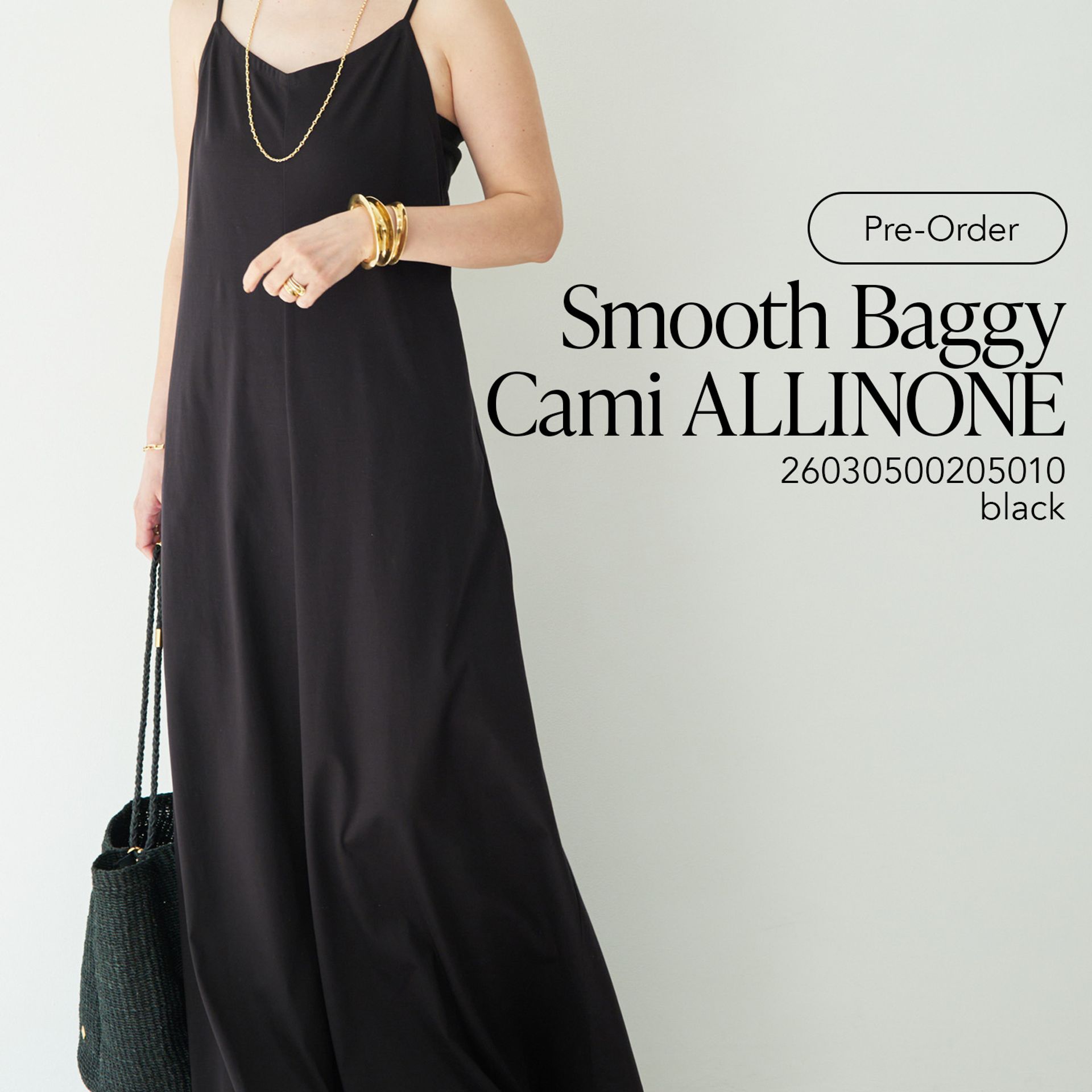 存在感のあるバギーシルエットがスタイリングに華やかさと余裕を生む、スムース素材のオールインワン。