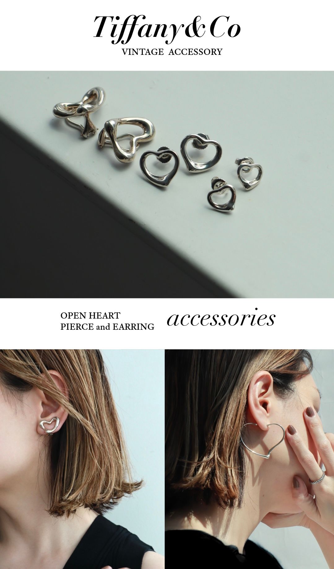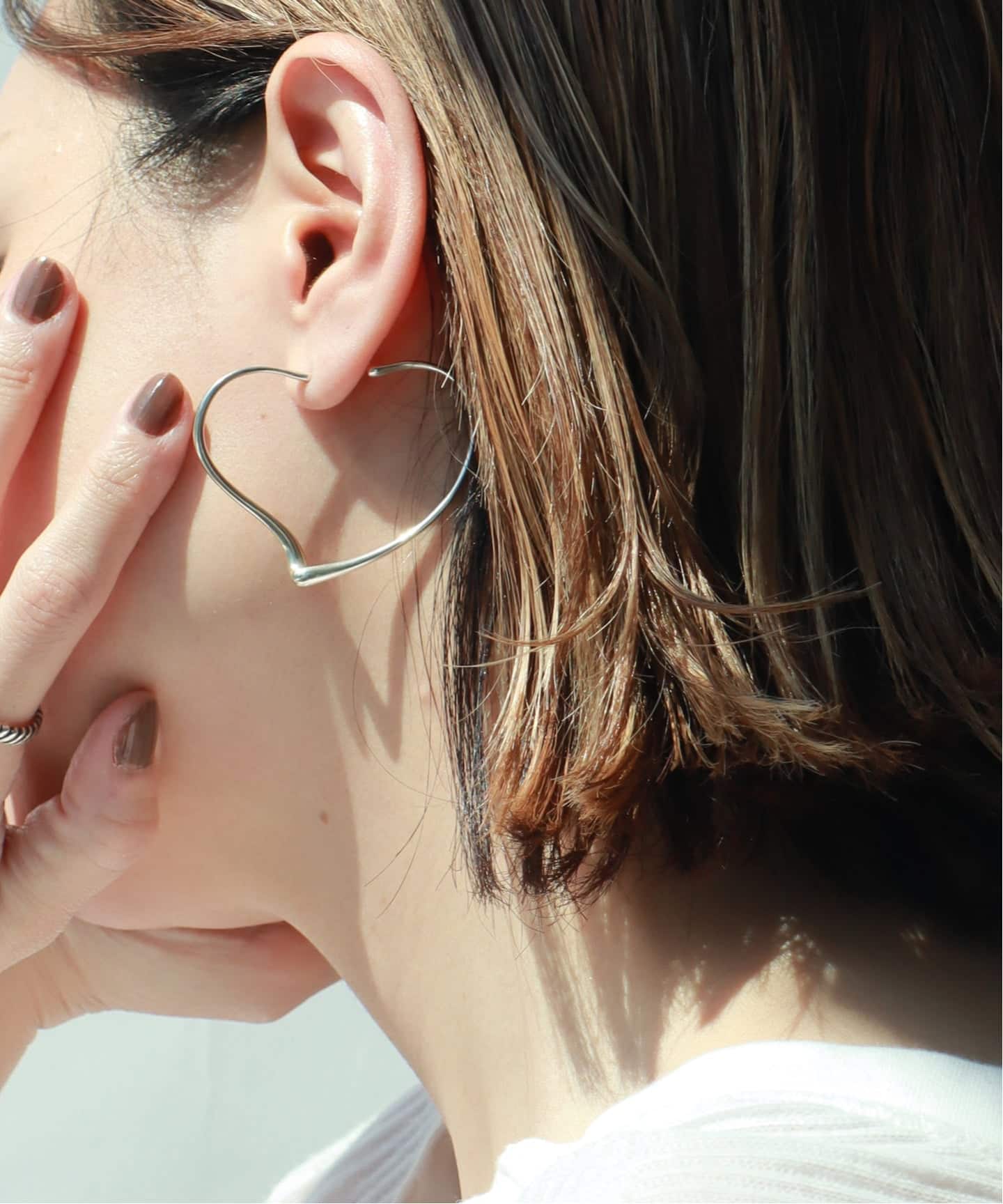 オープンハートのピアスやイヤリングは、甘さではなく、線の美しさで魅せる大人のためのシルバーアクセサリー。やわらかな曲線を描くデザインは、顔まわりに自然と光を集めて軽やかなムードに。