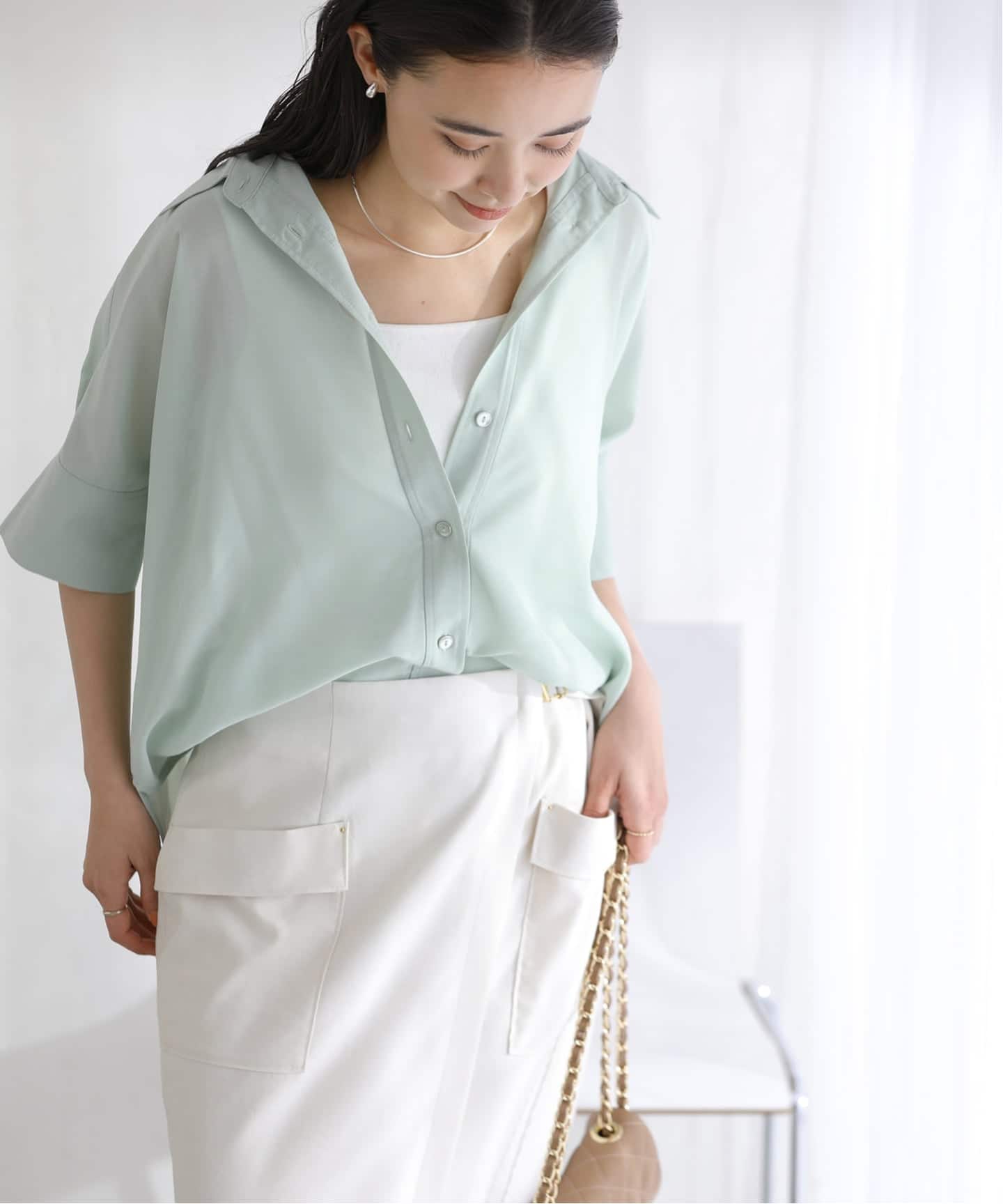 クリーンで上品な印象が際立つドルマンハーフスリーブシャツ。