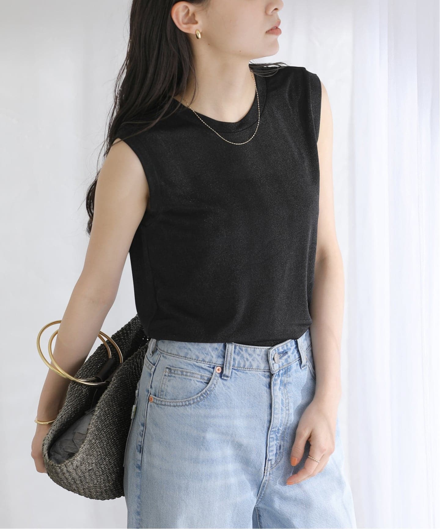さりげない光沢感が上品なシャイニーノースリーブトップス。