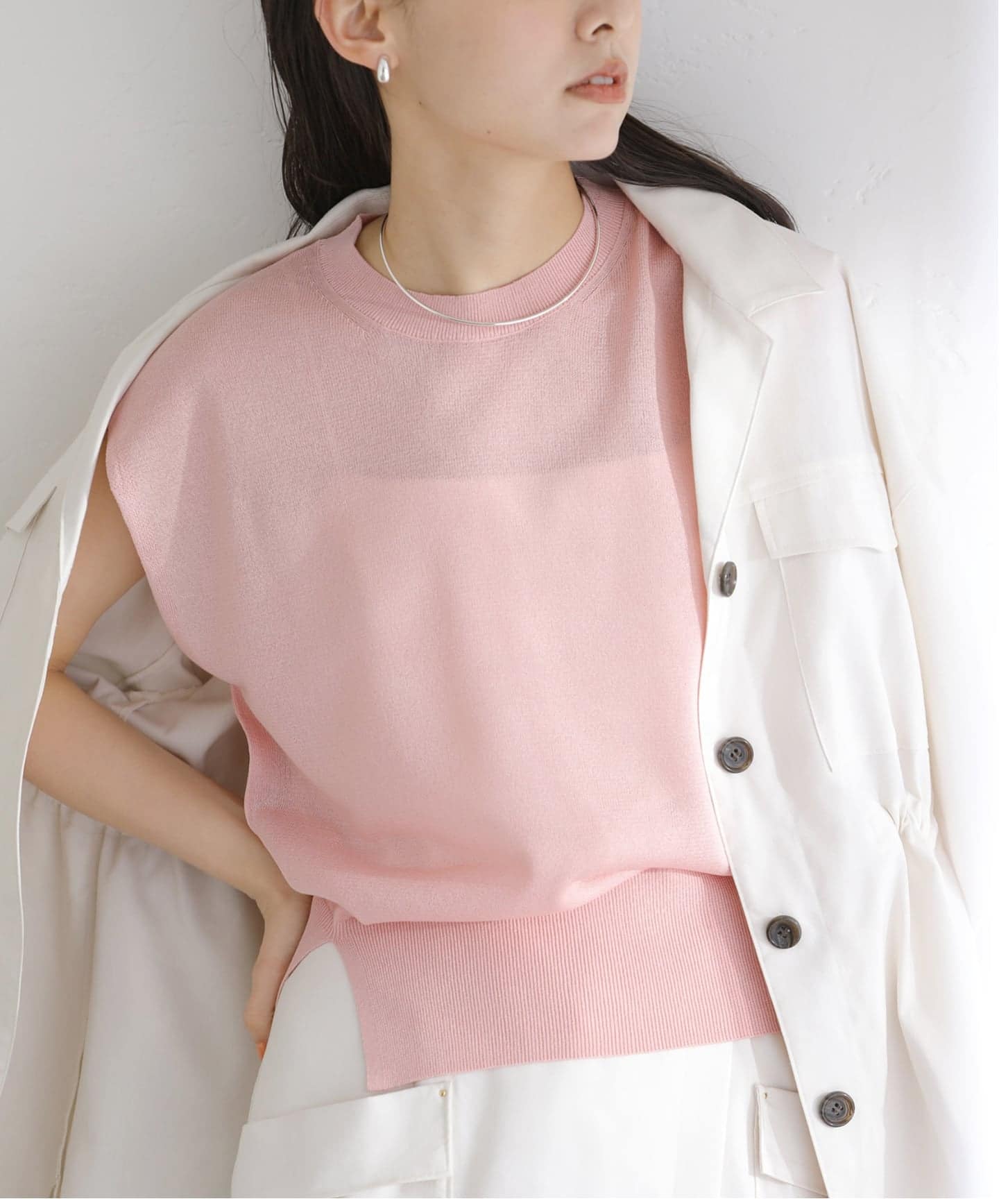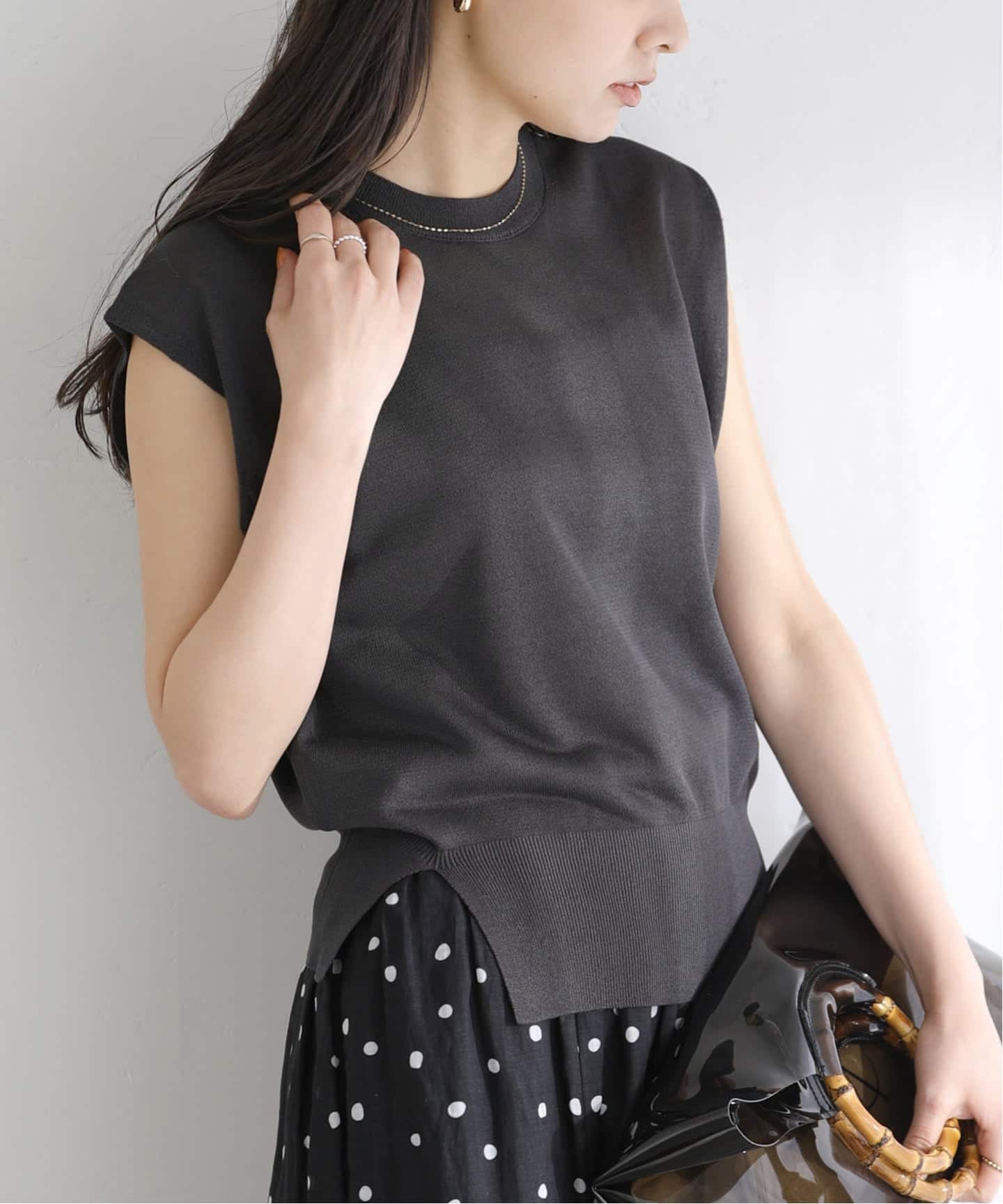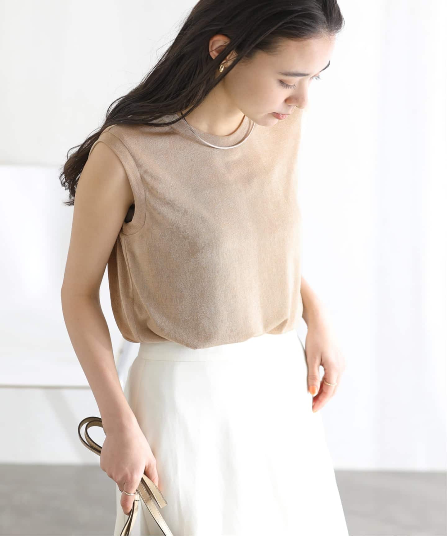 肩まわりをすっきり見せるノースリーブデザインで、ジャケットのインナーにも最適。