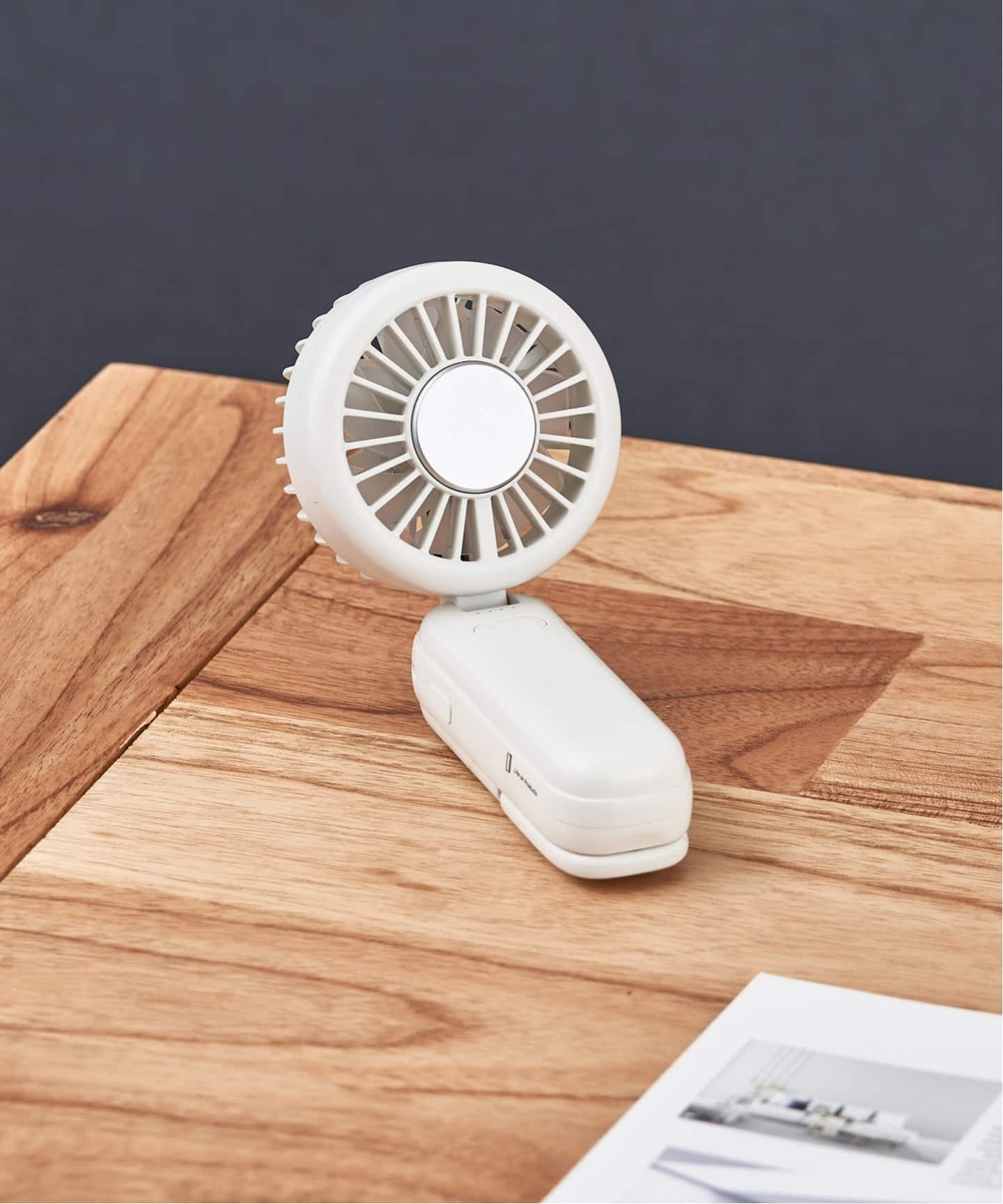 首の角度調節ができ、デスクファンやハンズフリーファンとしても活用可能!