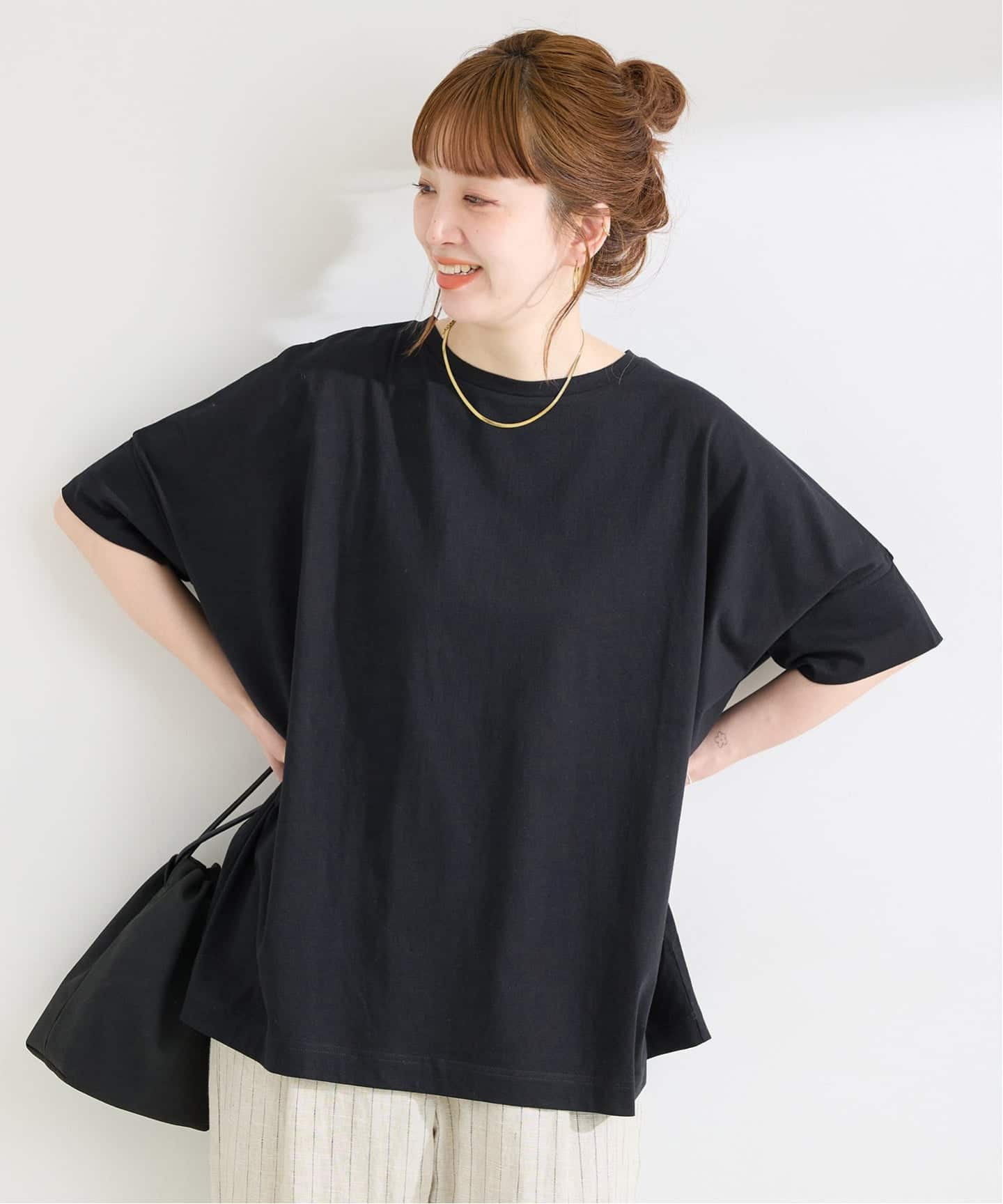 1枚で着ても安心感があり、デニムにもスカートにも合わせやすい万能TEEです。