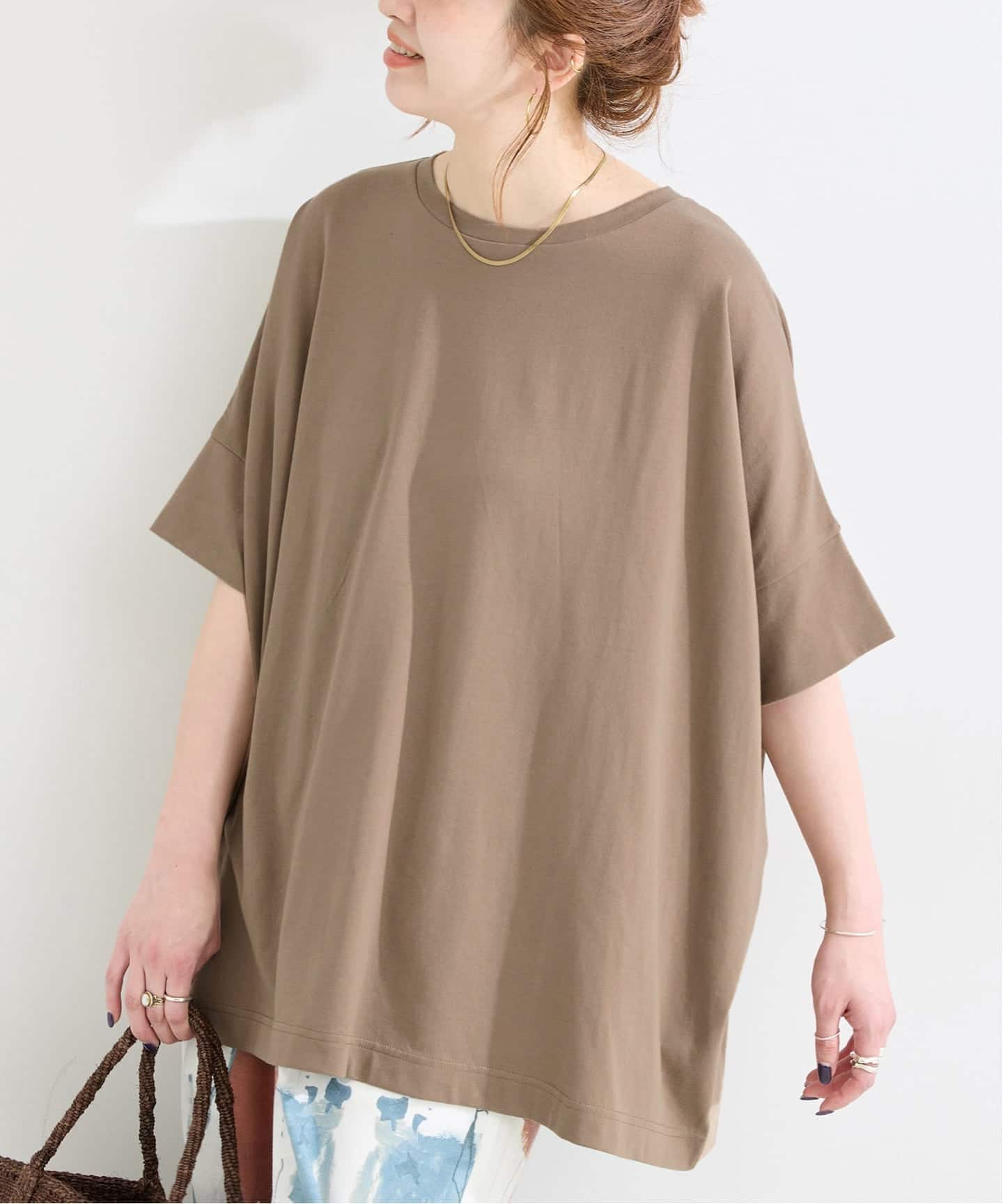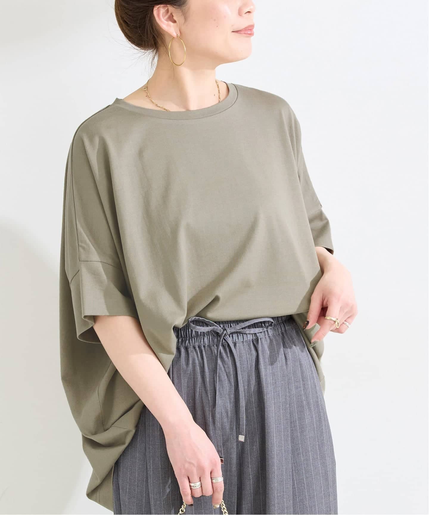 ゆったりとしたポンチョシルエットで、空気が通るような涼しさを感じられる1枚。