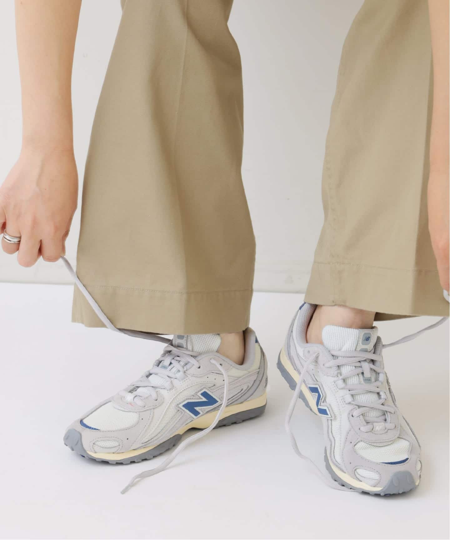 やわらかなベージュカラーが上品な抜け感をプラスし、スタイリングに自然と馴染みます。