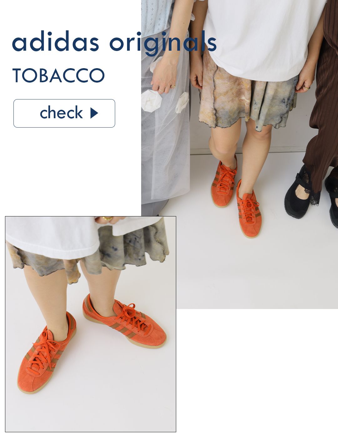 クラシックなムードと細身のシルエットで、adidas originalsの中でも人気の高い“TOBACCO”。
