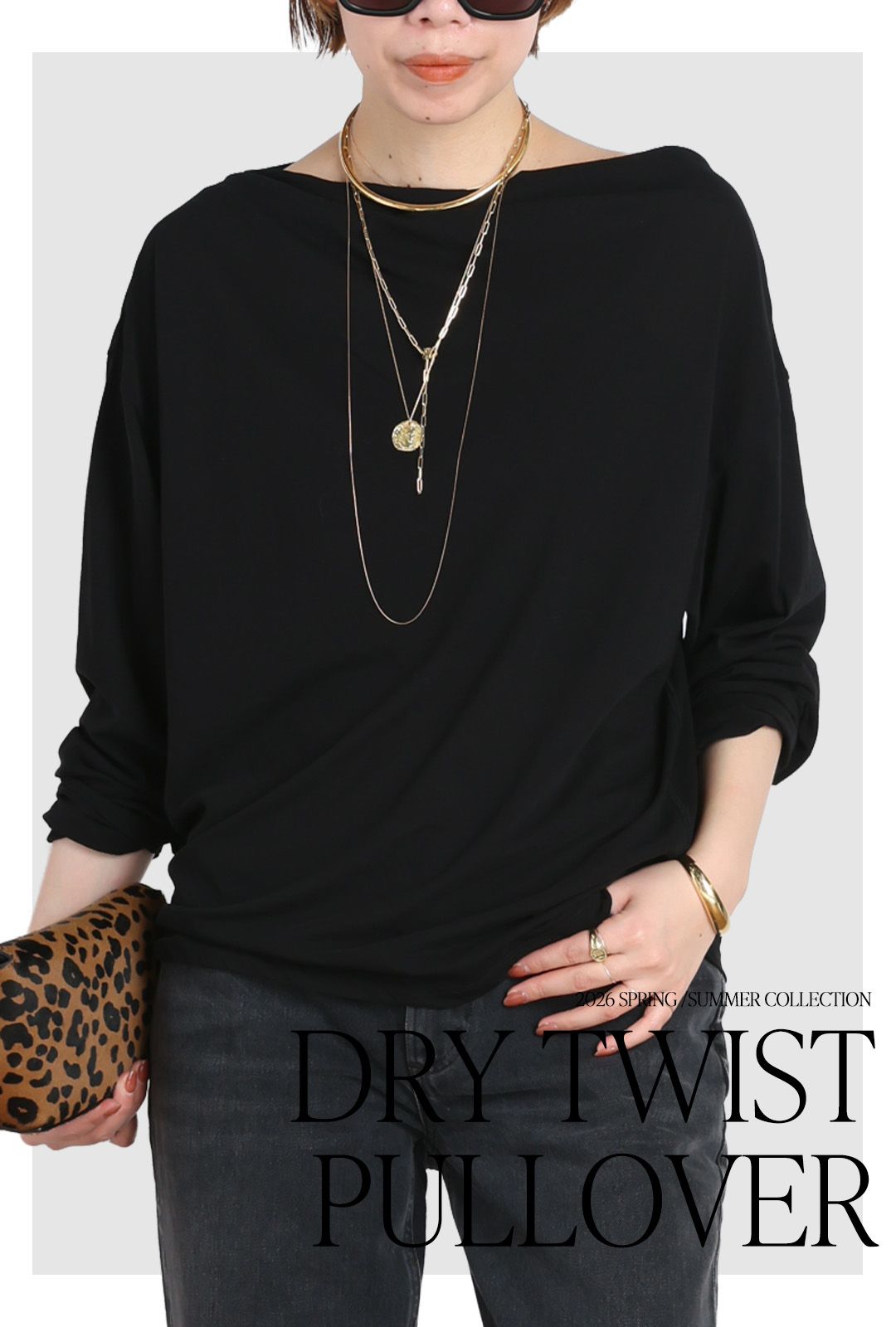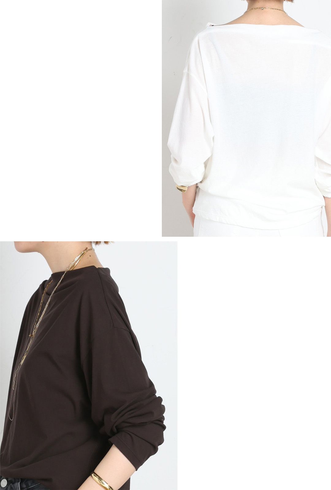 ネックラインには自然なドレープが入り、軽やかな印象に。