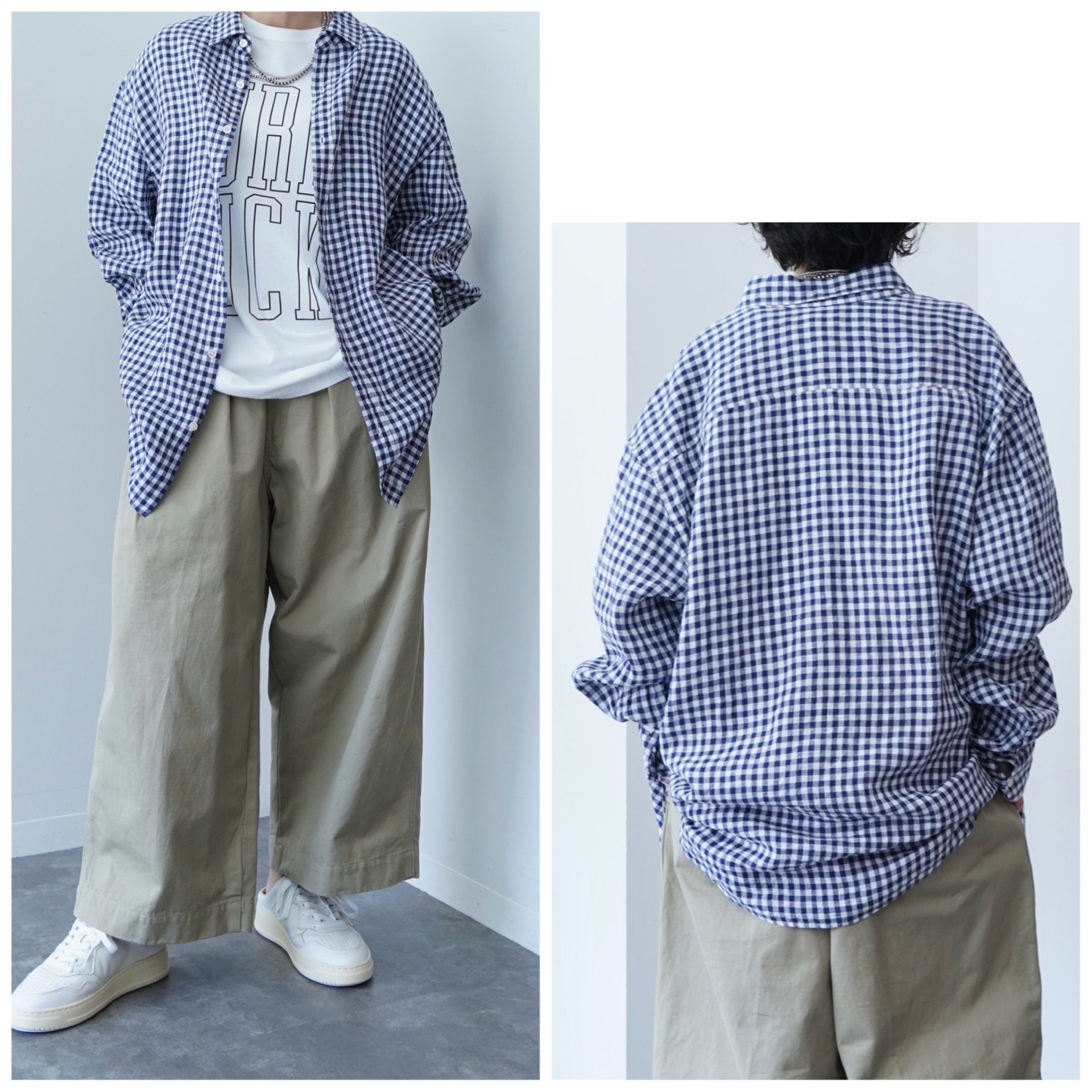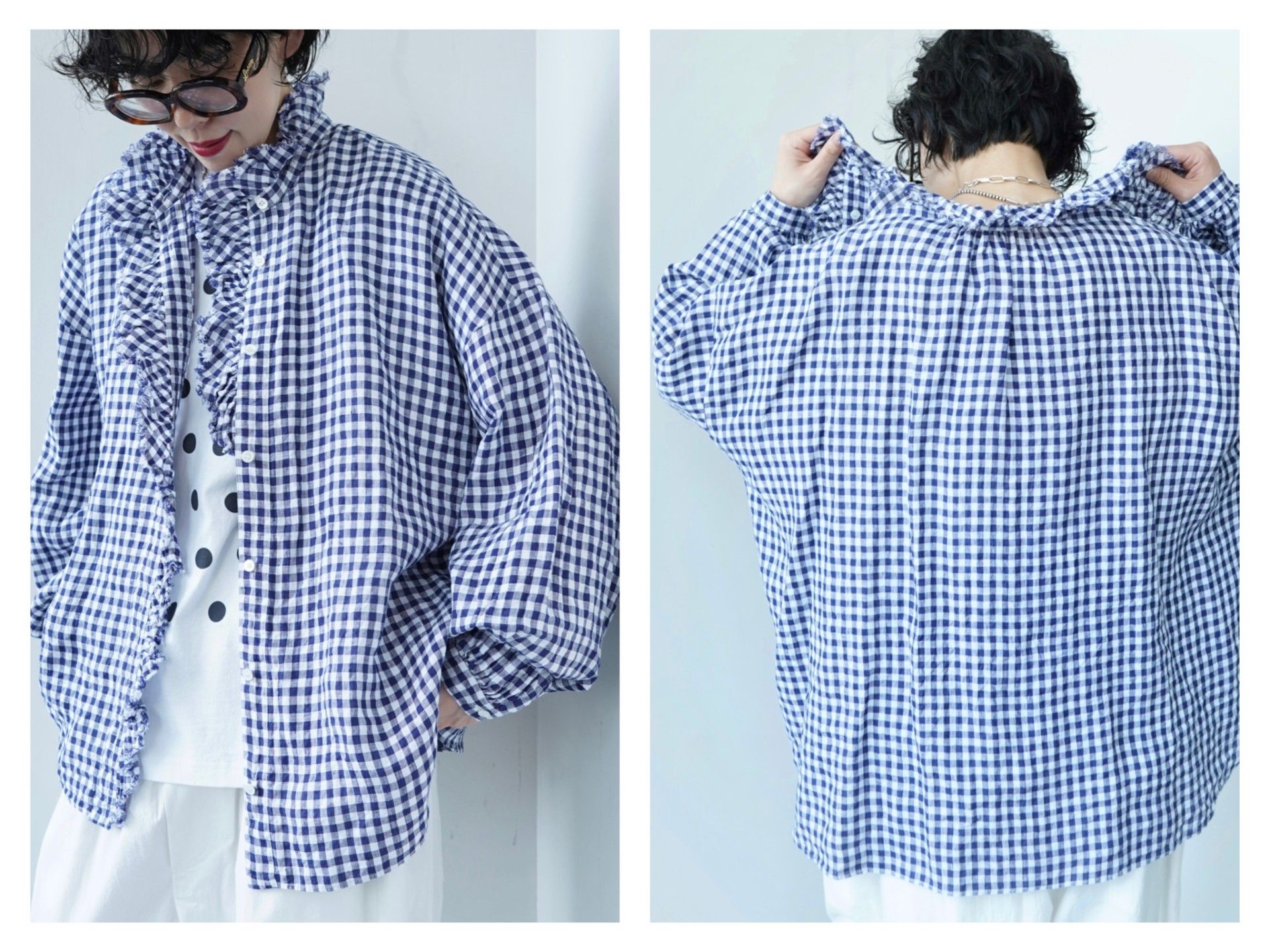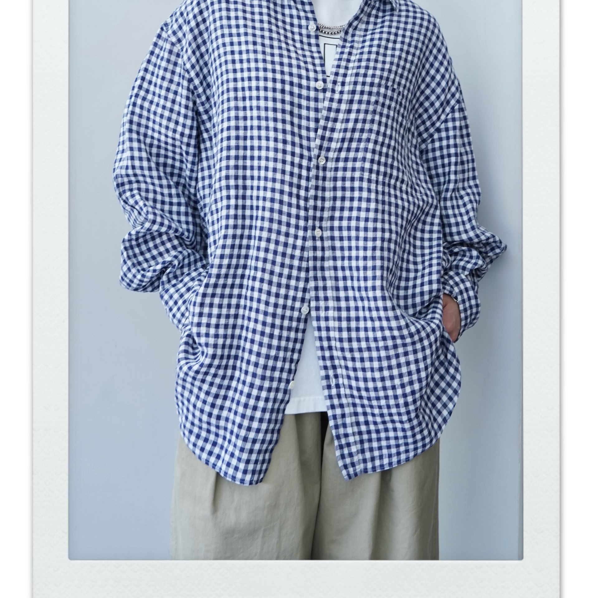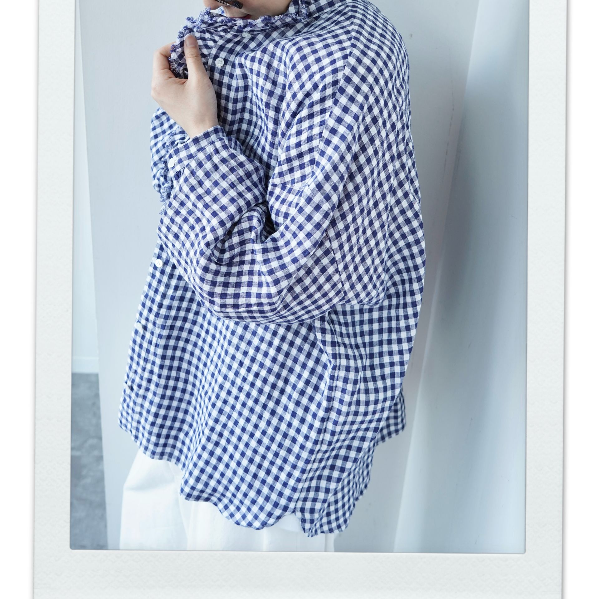 ここ最近luxeの定番モデルになっている、メンズシャツをベースにしたPlainシャツモデル。着まわしがきき、サラッと一枚でも様になるデザインのこちらは、ネイビー・ギンガム(中)の他に、ベーシックな白無地もご用意しました。