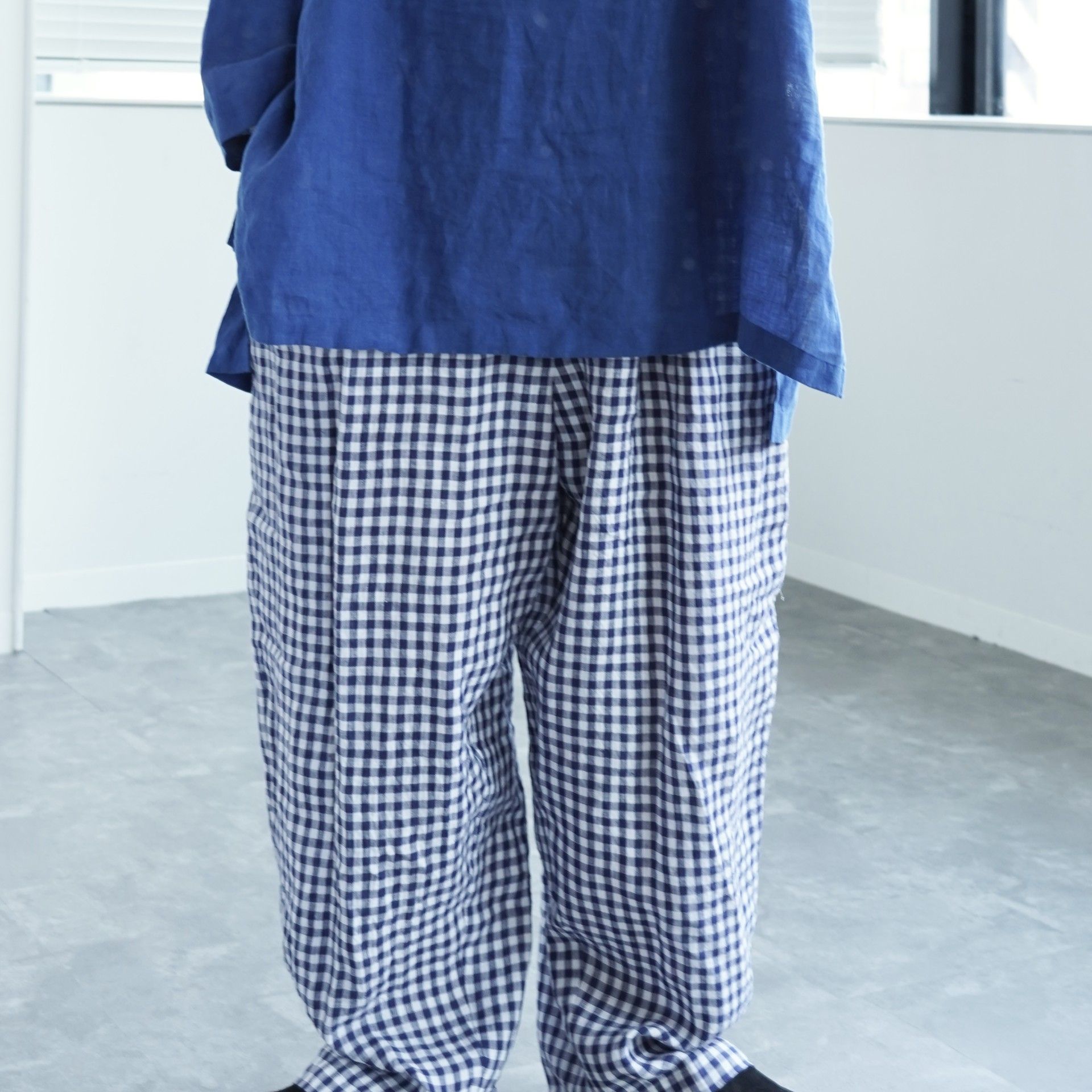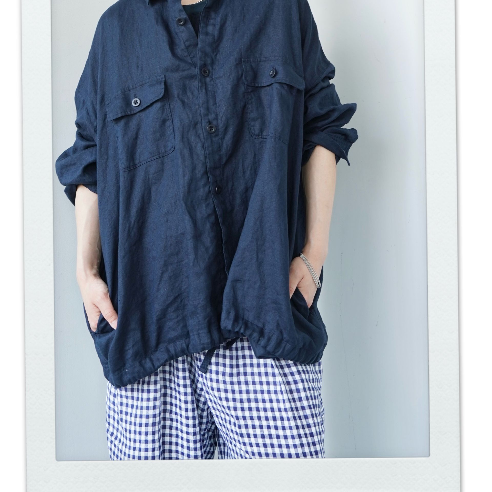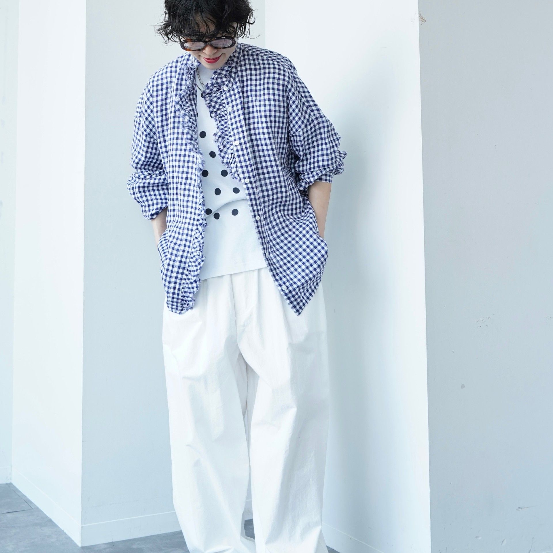 "TabbyリネンPlain SH" / \22,000 / size: free / col: navy(gingham). white(無地)