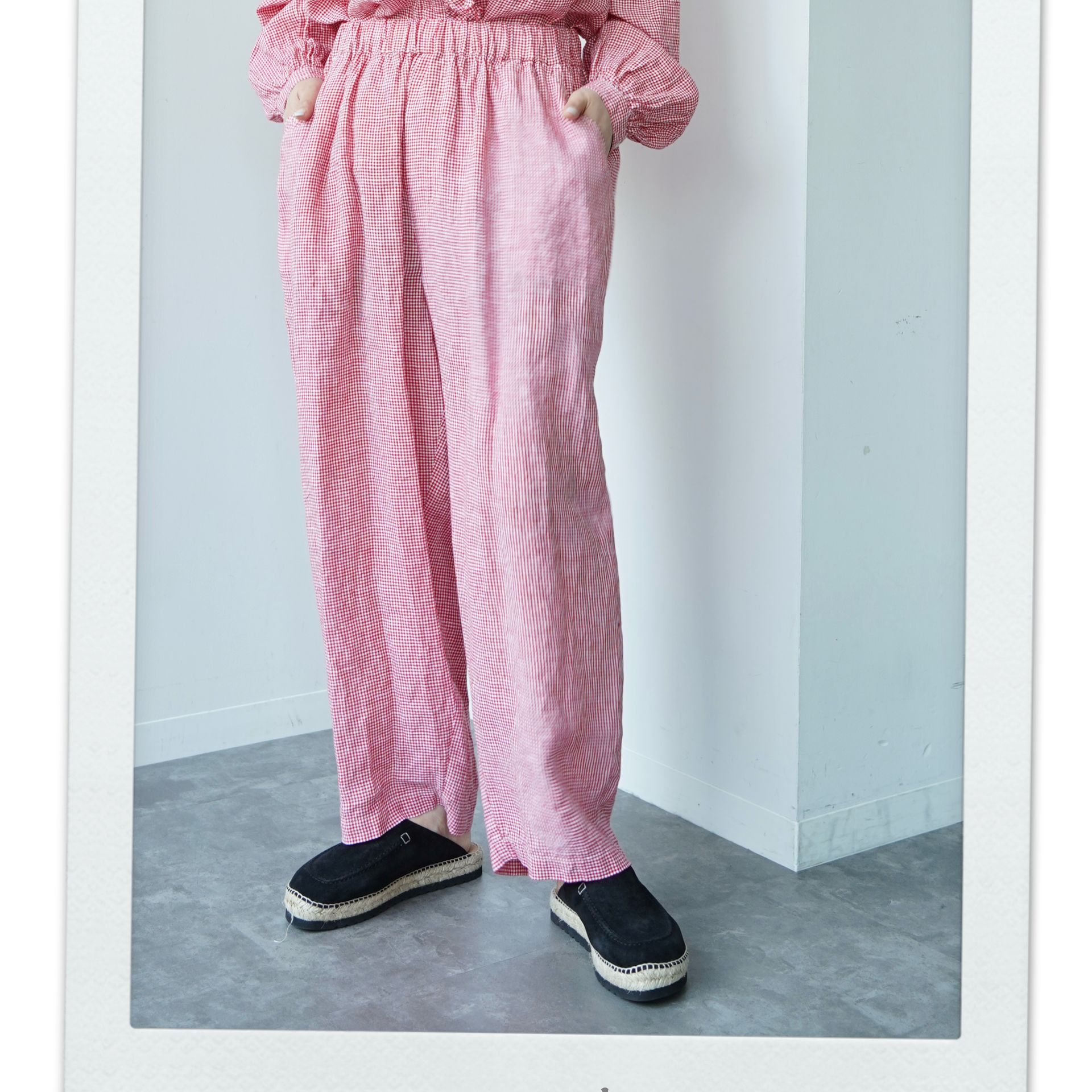 luxe定番のテーパードイージーパンツ。ゆったりしたラインで上アウトはゴム紐の楽な履き心地。ドライタッチで清涼感があるワッシャー仕上げの素材がこれからの季節にぴったりのアイテムです。