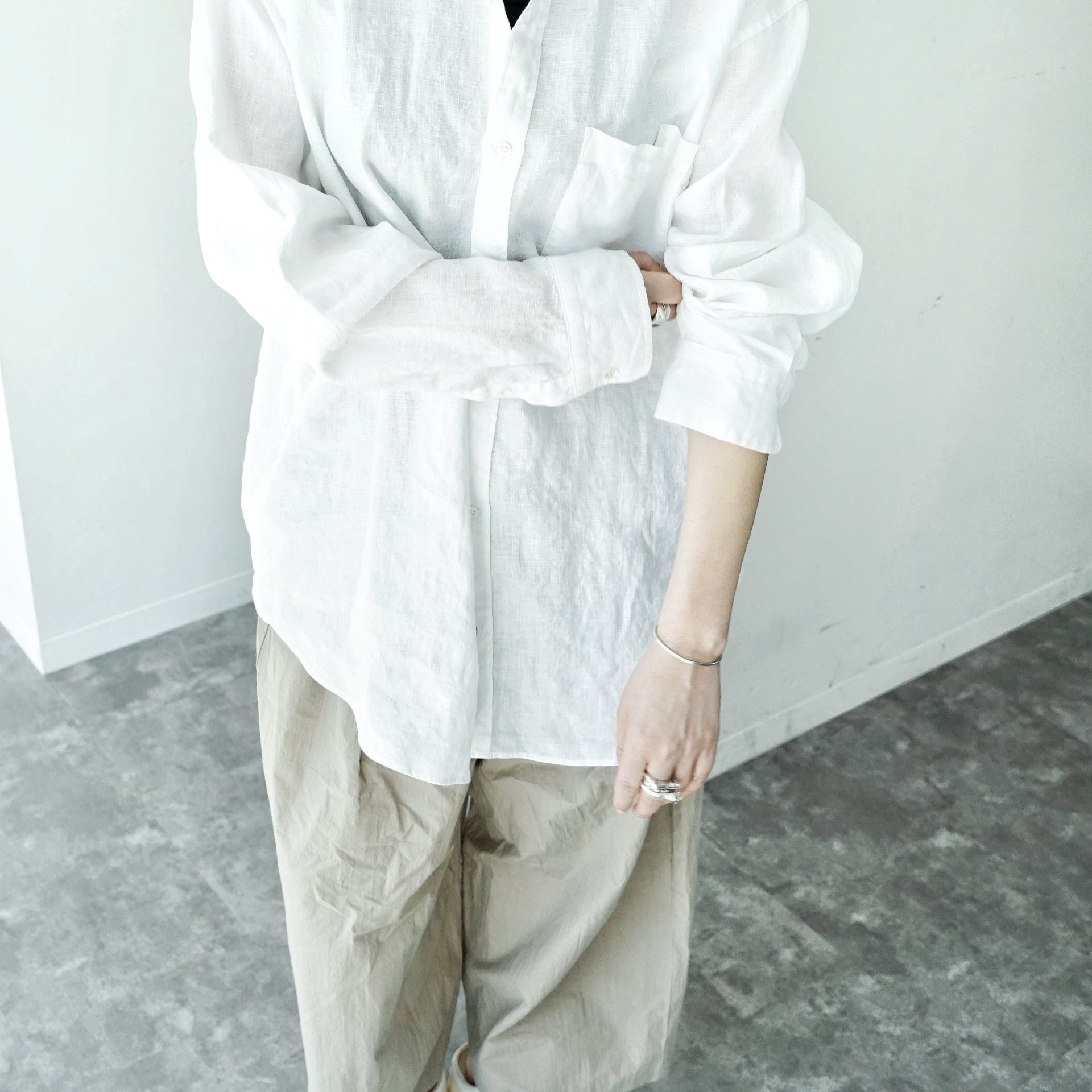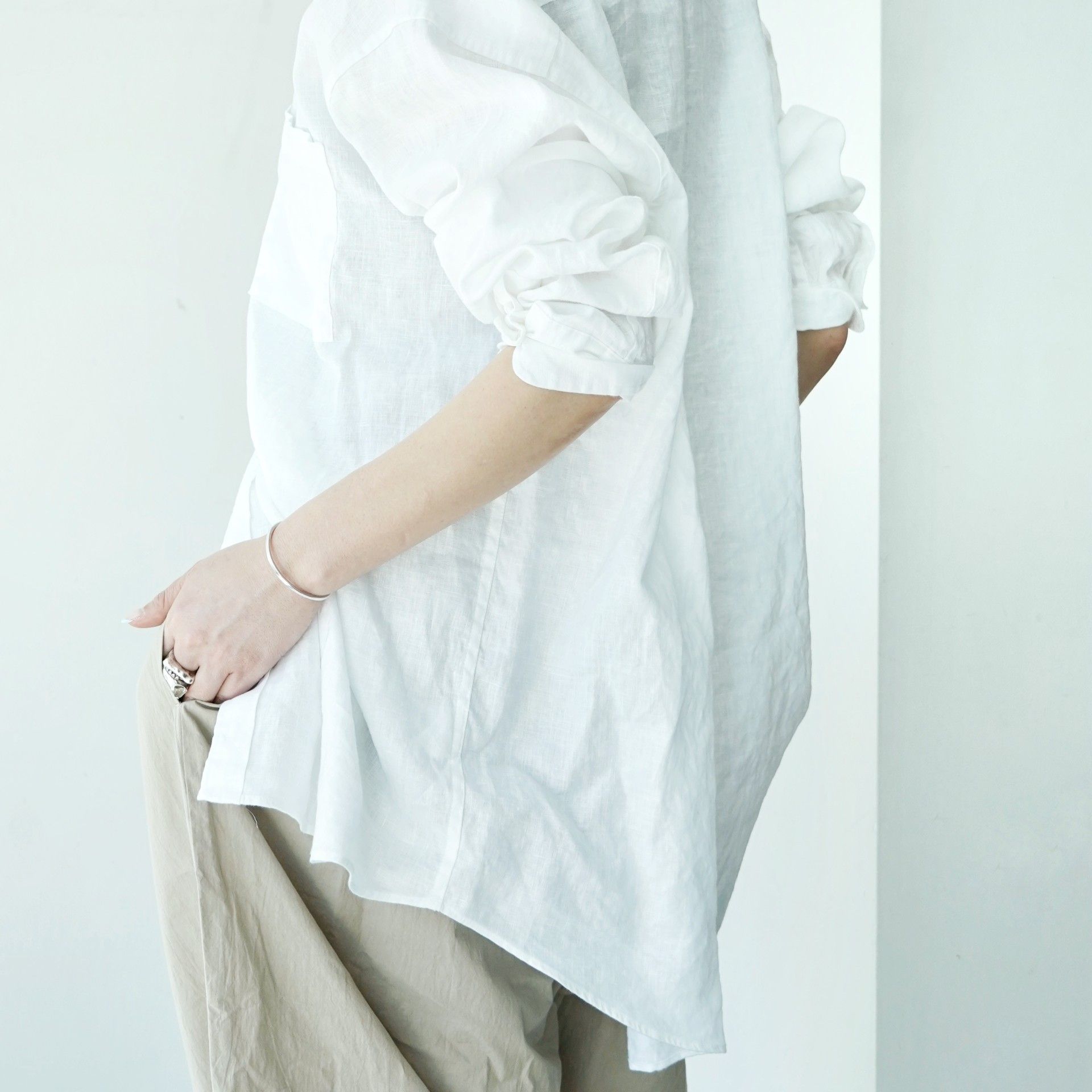 ここ最近luxeの定番モデルになっている、メンズシャツをベースにしたPlainシャツモデル。着まわしがきき、サラッと一枚でも様になるデザインのこちらは、ネイビー・ギンガム(中)の他に、ベーシックな白無地もご用意しました。