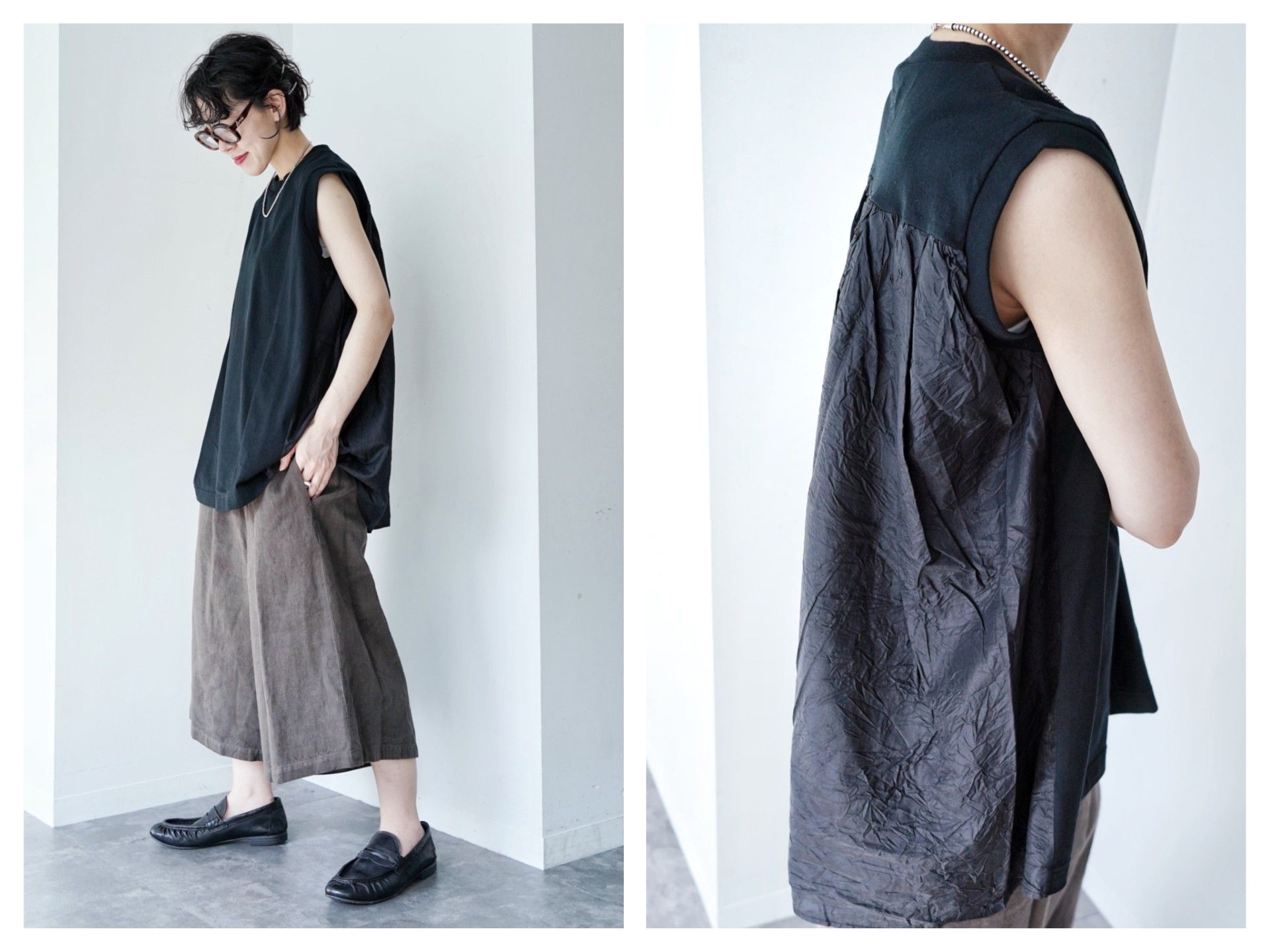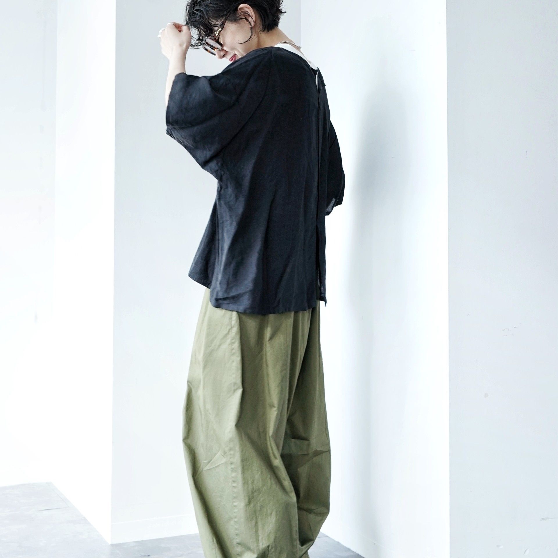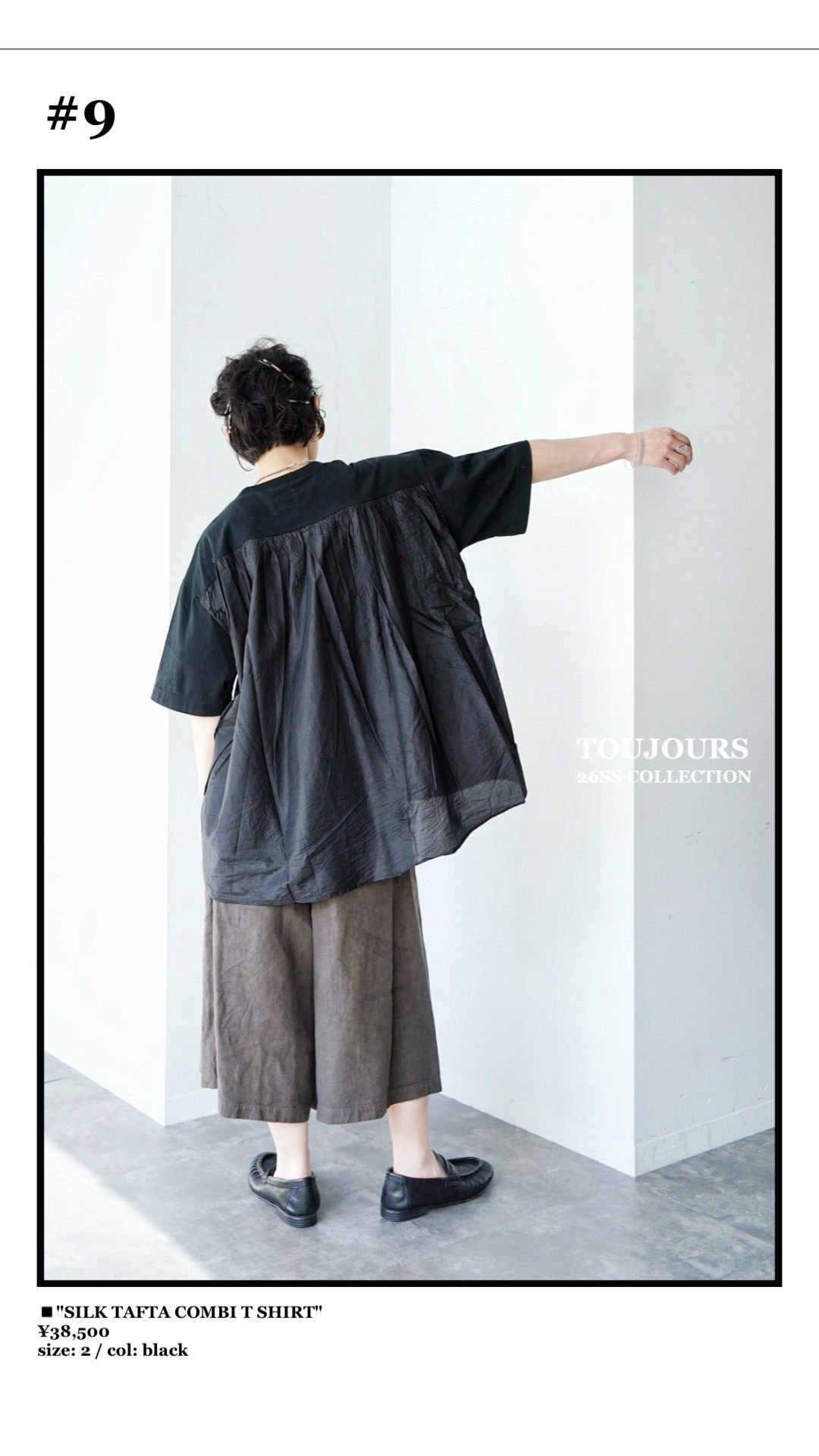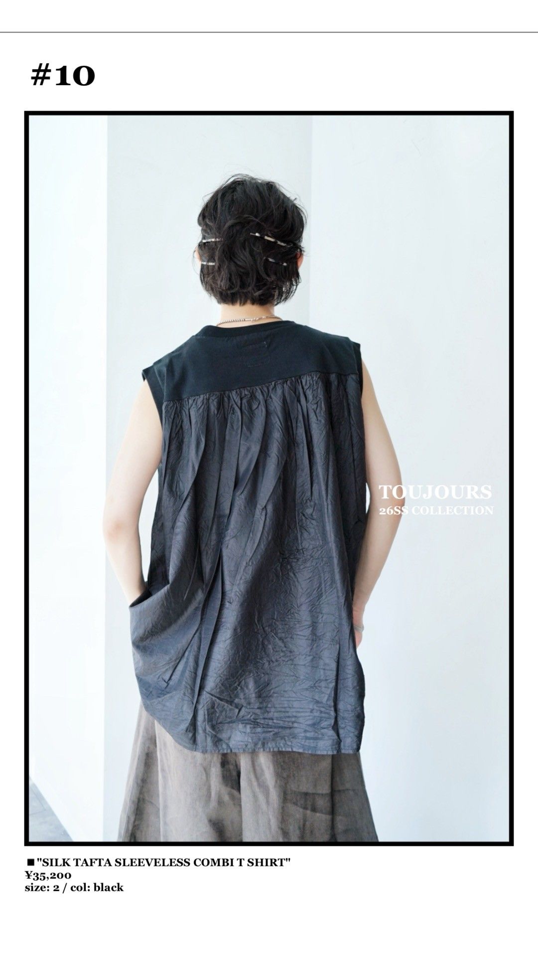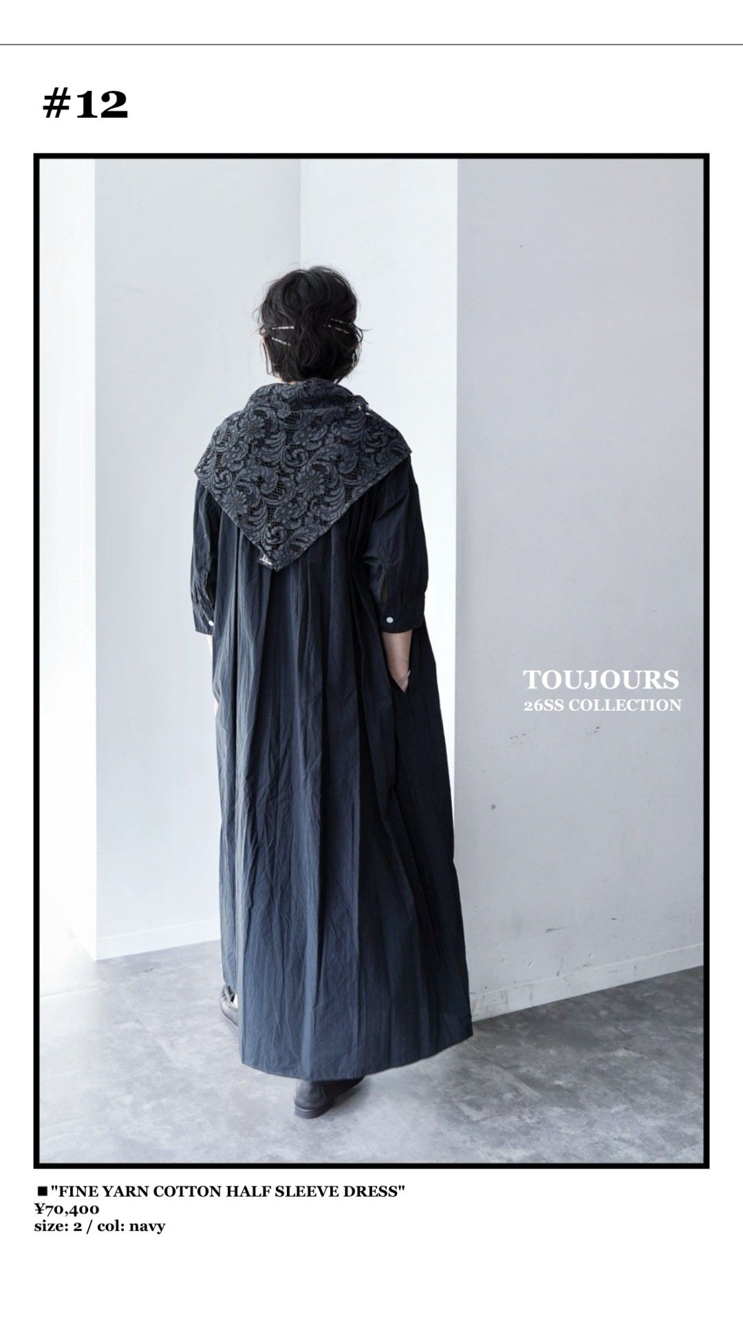 TOUJOURSらしいネイビーをベースに、シックなブラックを加え、ピンクはSHEL PINKやSMOKE PINK、ブルーはINDIGO BLUEやSMOKE SAなど、ブランドらしいニュアンスカラーや素材使いもポイントのシーズンです。