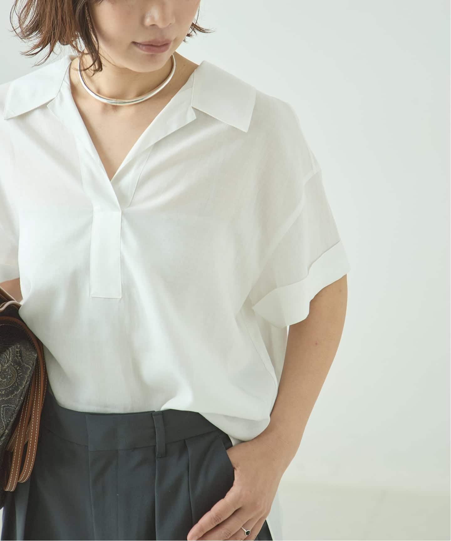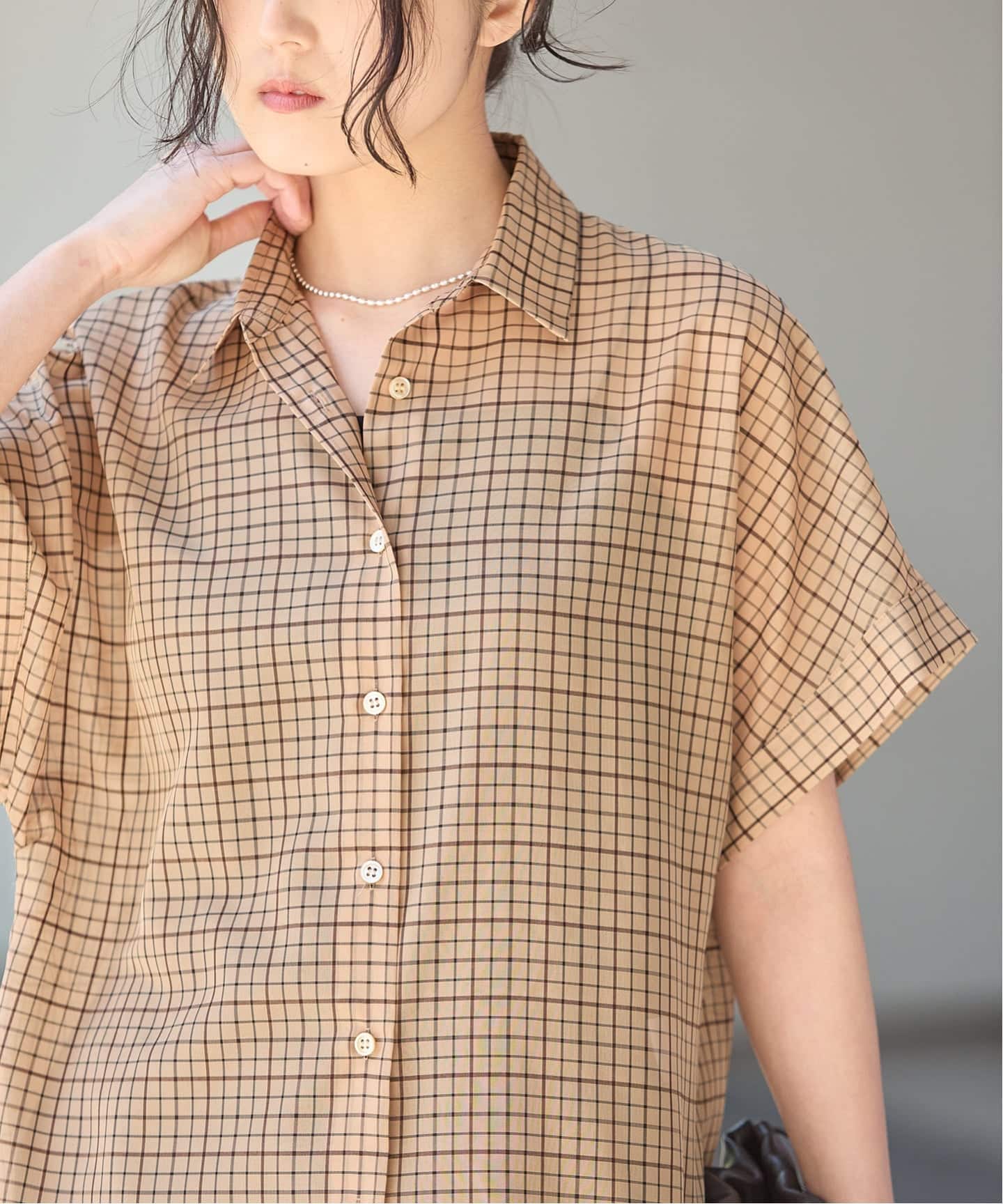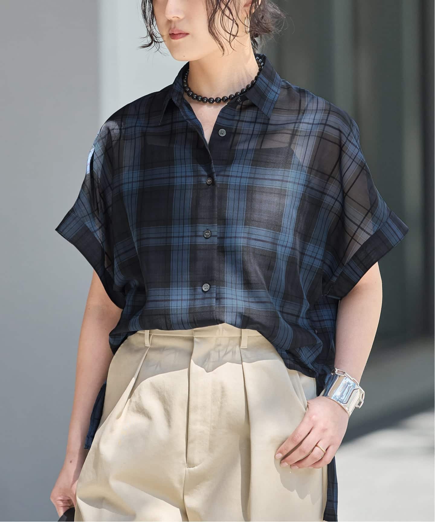《予約》シアーチェック/無地ツイストシャツ