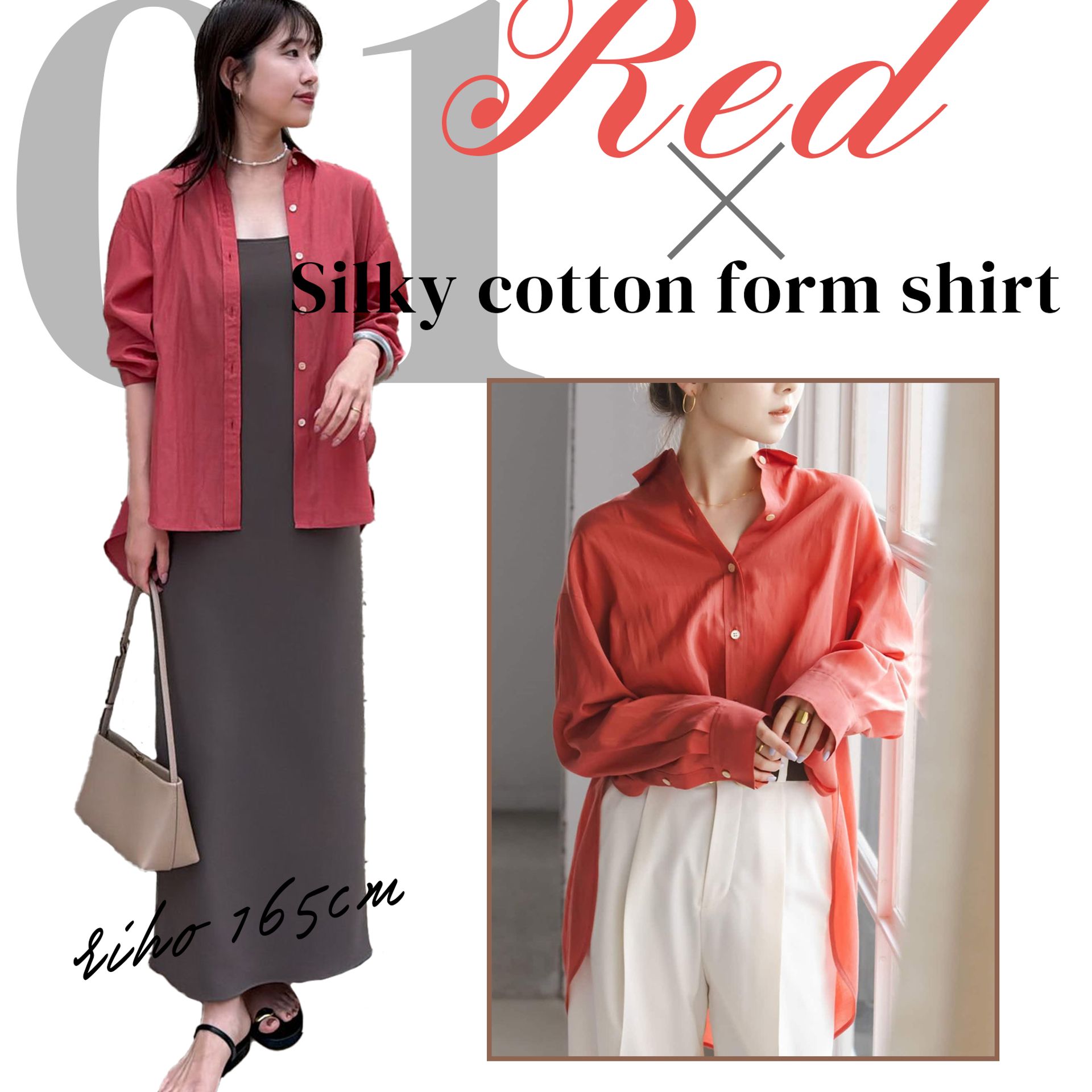 パリッと感を抑えたシルキータッチで光沢のある生地は、カジュアルになりがちなシャツアイテムを女っぽく仕上げてくれる◎