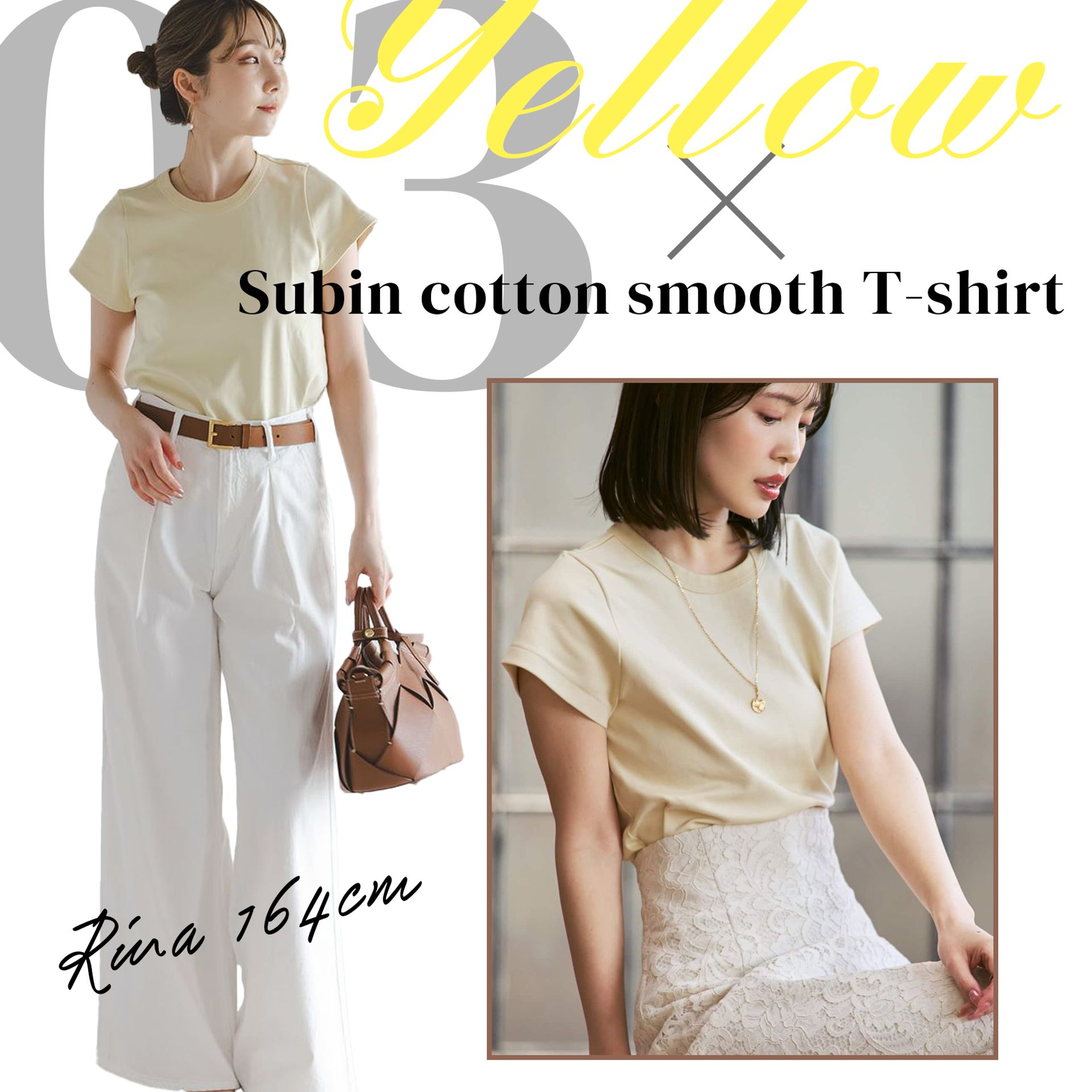 淡いイエロー×ホワイトで明るく好印象な着こなしに。