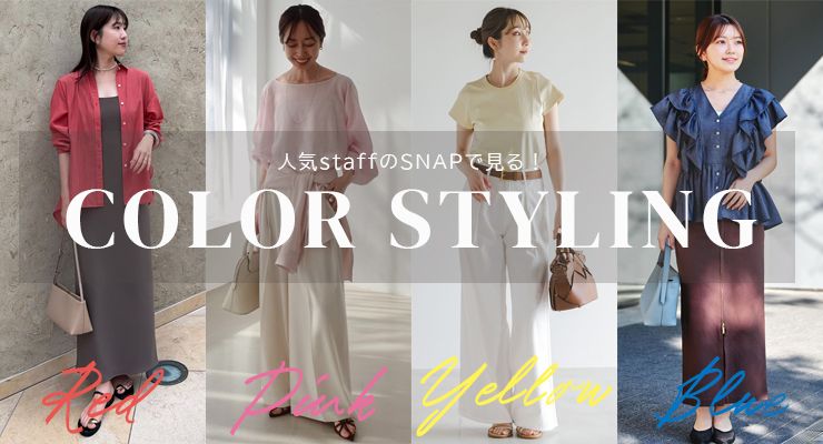 今回は一押しのカラー物を人気スタッフの着こなしと併せてご紹介。
