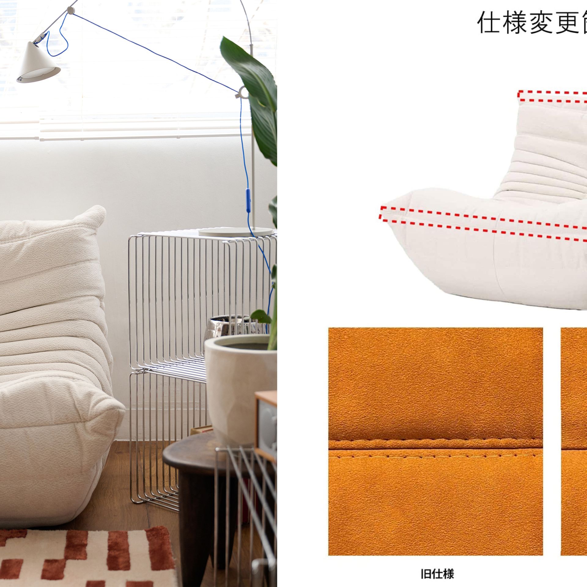 新仕様では、使用開始直後は従来品より、ややしっかりとした座り心地に感じられる場合があります。