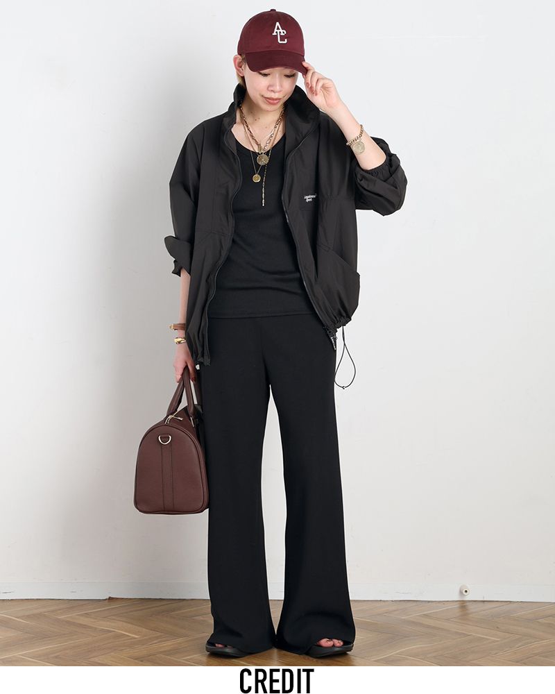 裾にドローコードが入っているので裾を絞っても、ストレートシルエットでも穿いていただけます。