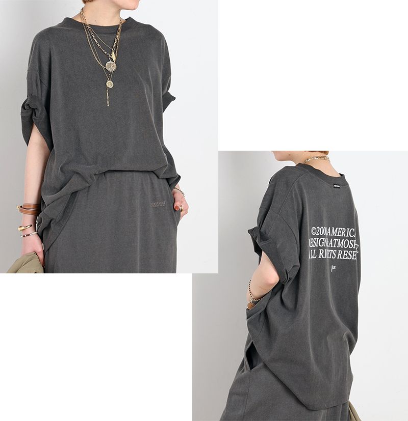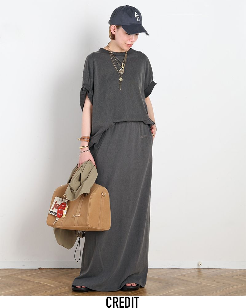 オーバーシルエットTシャツとセットアップで着れるように完全別注したAPだけのスカート。