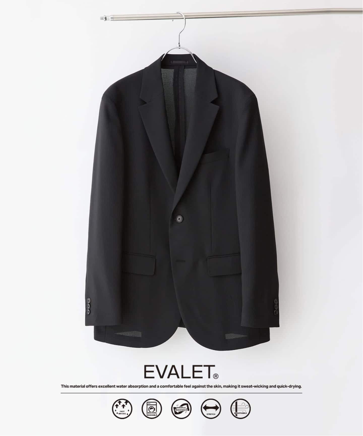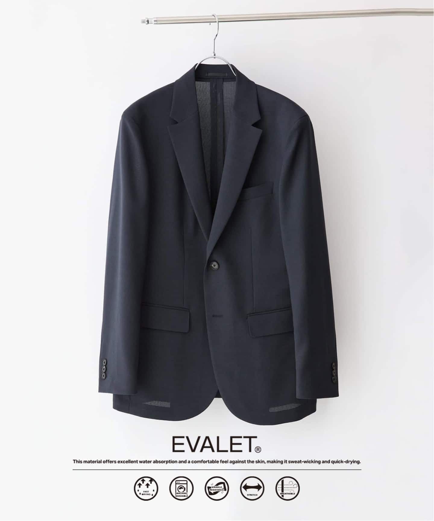 |”吸汗&速乾機能” EVALET メッシュ 2ボタン ジャケット&イージースラックス