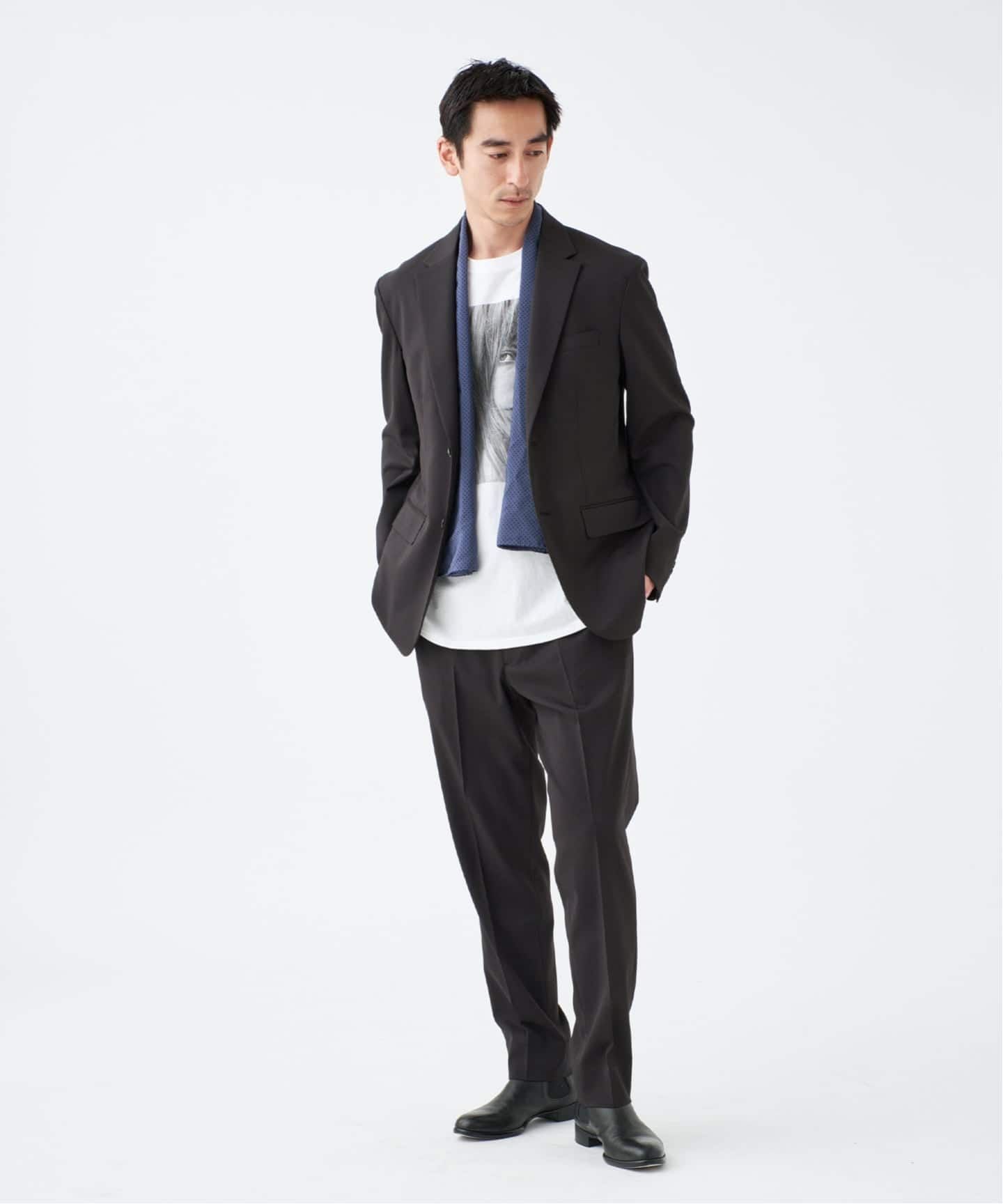夏向けの生地を採用しているとはいえ、ドレスアップした着こなしにも対応できるラペル幅、高級感を感じるポケットのステッチワークなど大人が納得できる細部にこだわったエディフィスらしい一着です。