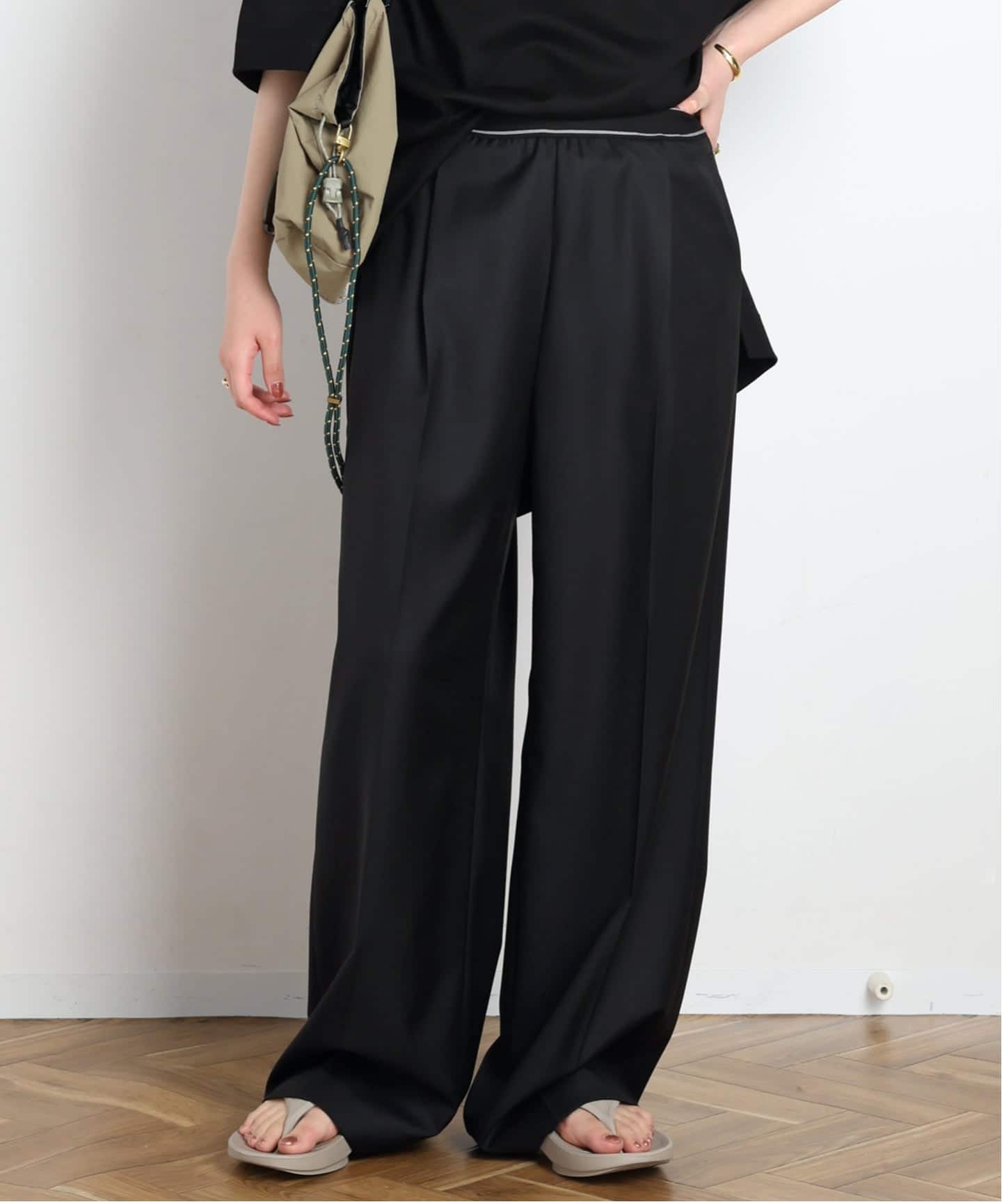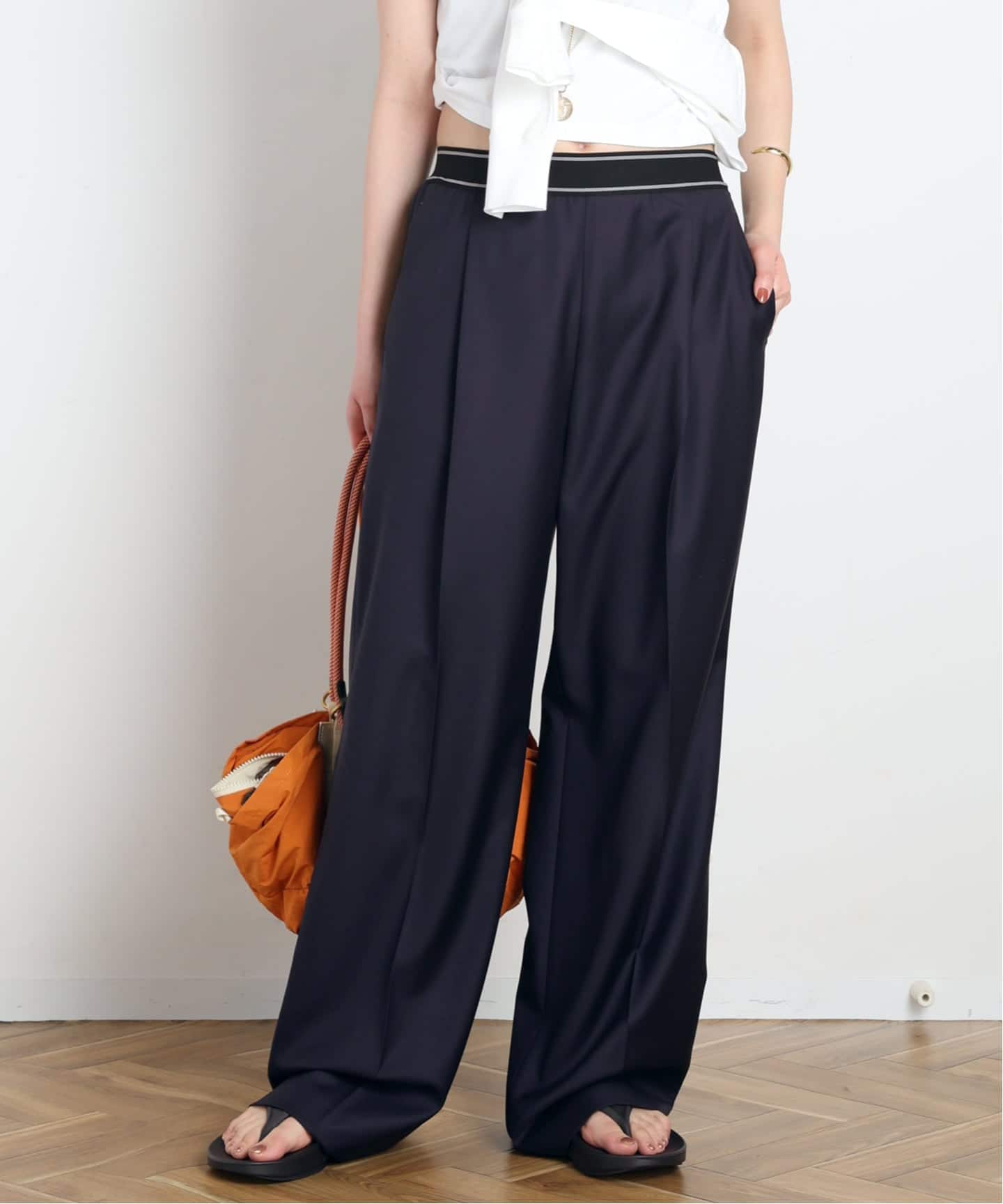 ライン入りのウエストゴムがアクセントになるイージーパンツ。
